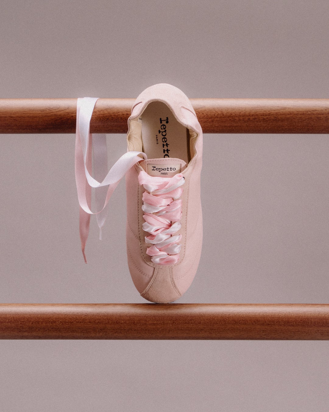 サケット製法により仕立てられたスニーカーは、驚くほどのしなやかさと、軽やかな履き心地を実現。上品でモダンなダブルサテンのシューレースは、バレエシューズのリボンを連想させ、チュチュのように波打つギャザー入りの履き口は、フェミニンなアクセントとともにバレエの魅力を表現しています。