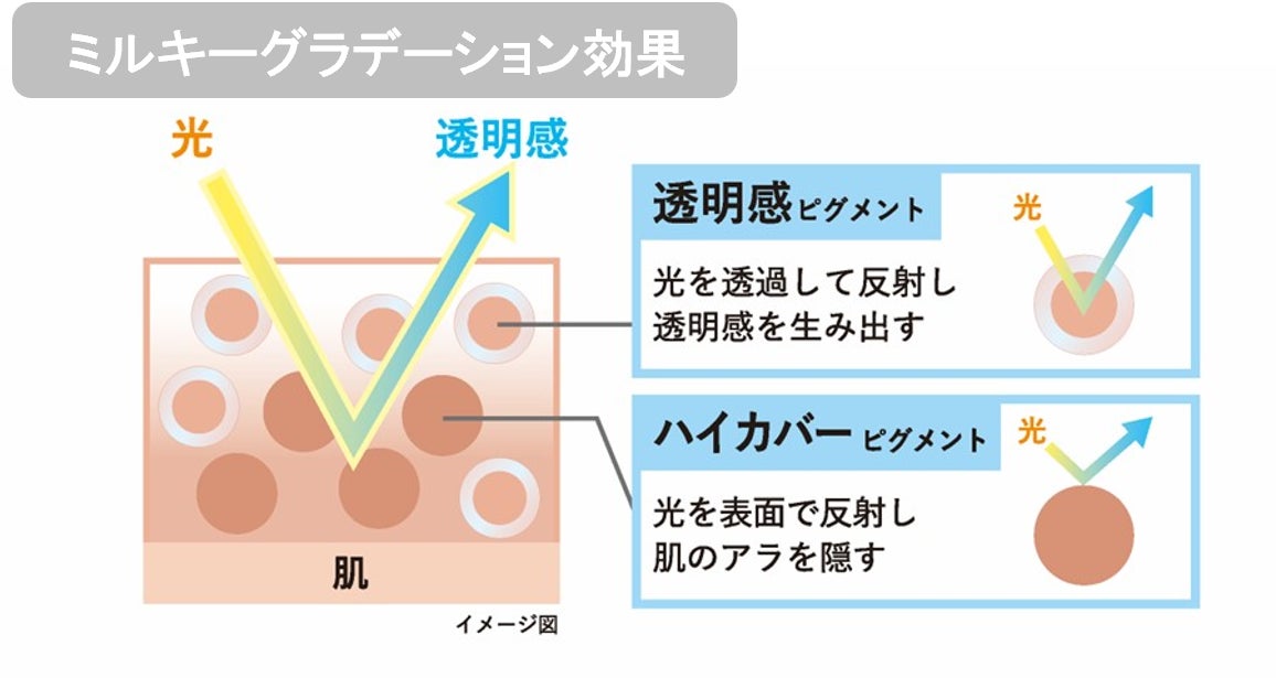 ◇ミルキーグラデーション効果により、内側からじゅわっとあふれるような透明感を演出。
