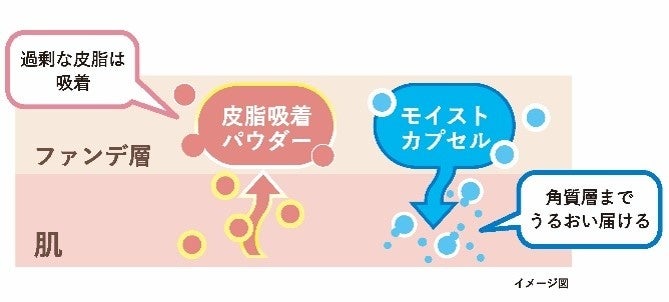 ◇過剰な皮脂を吸着する皮脂吸着パウダーと角質層までうるおいを届けるモイストカプセルによる