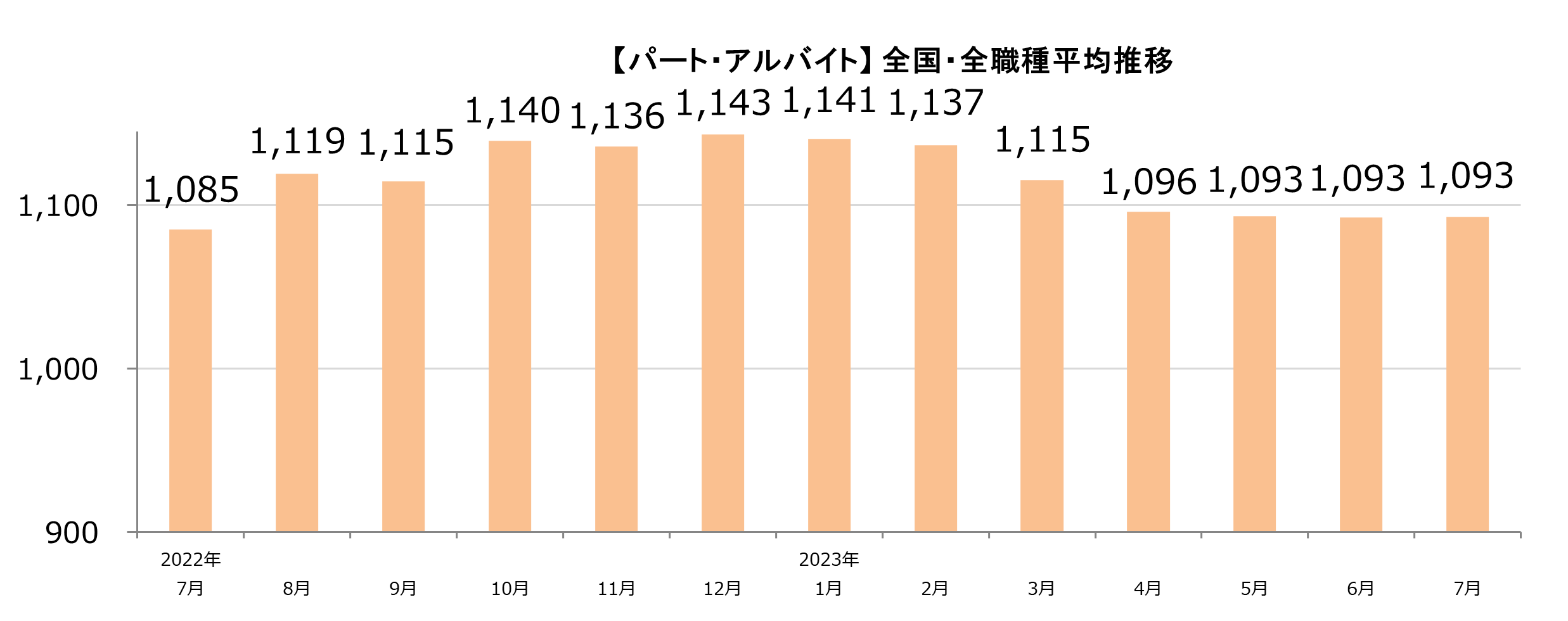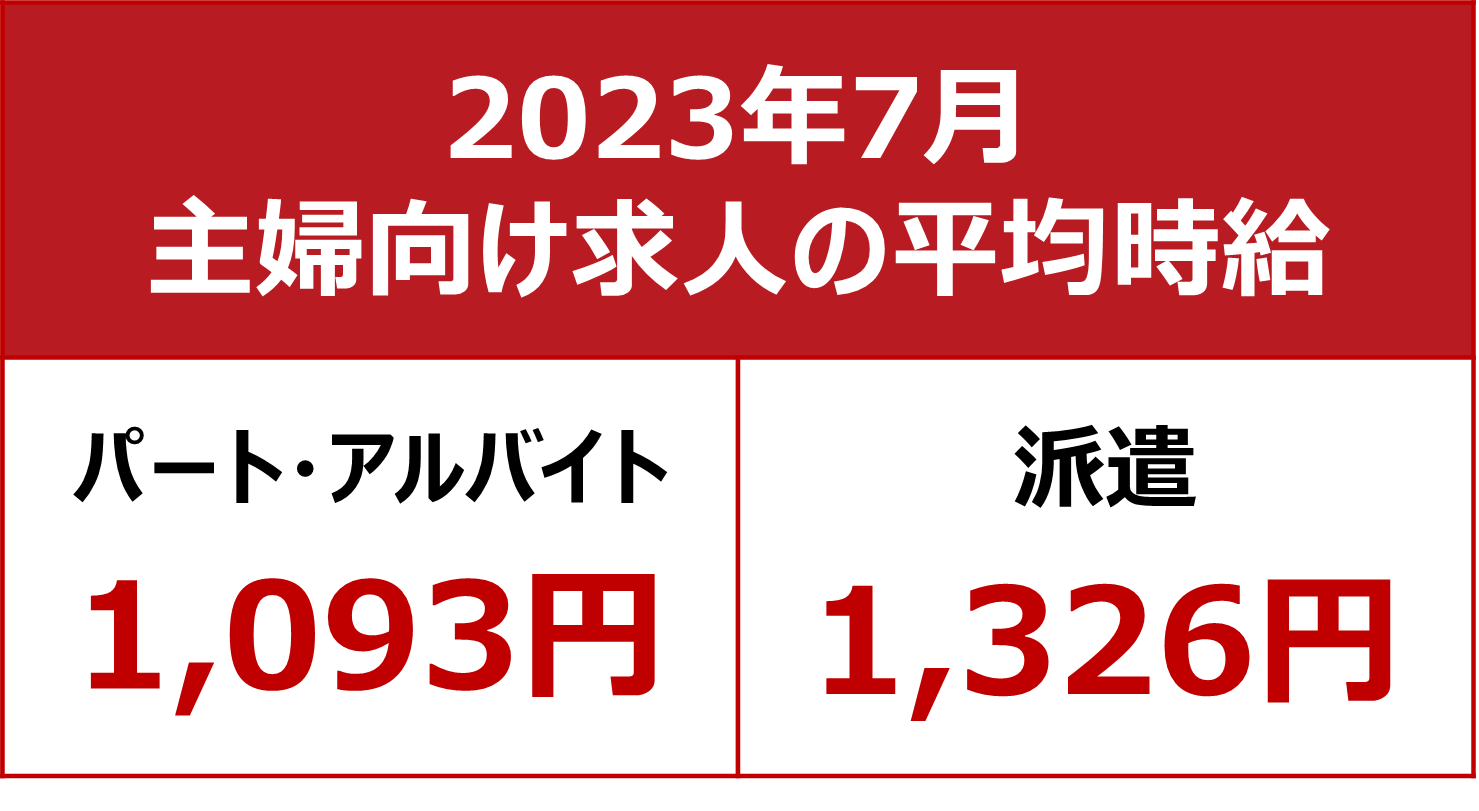 【2023年7月 主婦求人の平均時給】パート・アルバイト:『1,093円』、派遣:『1,326円』