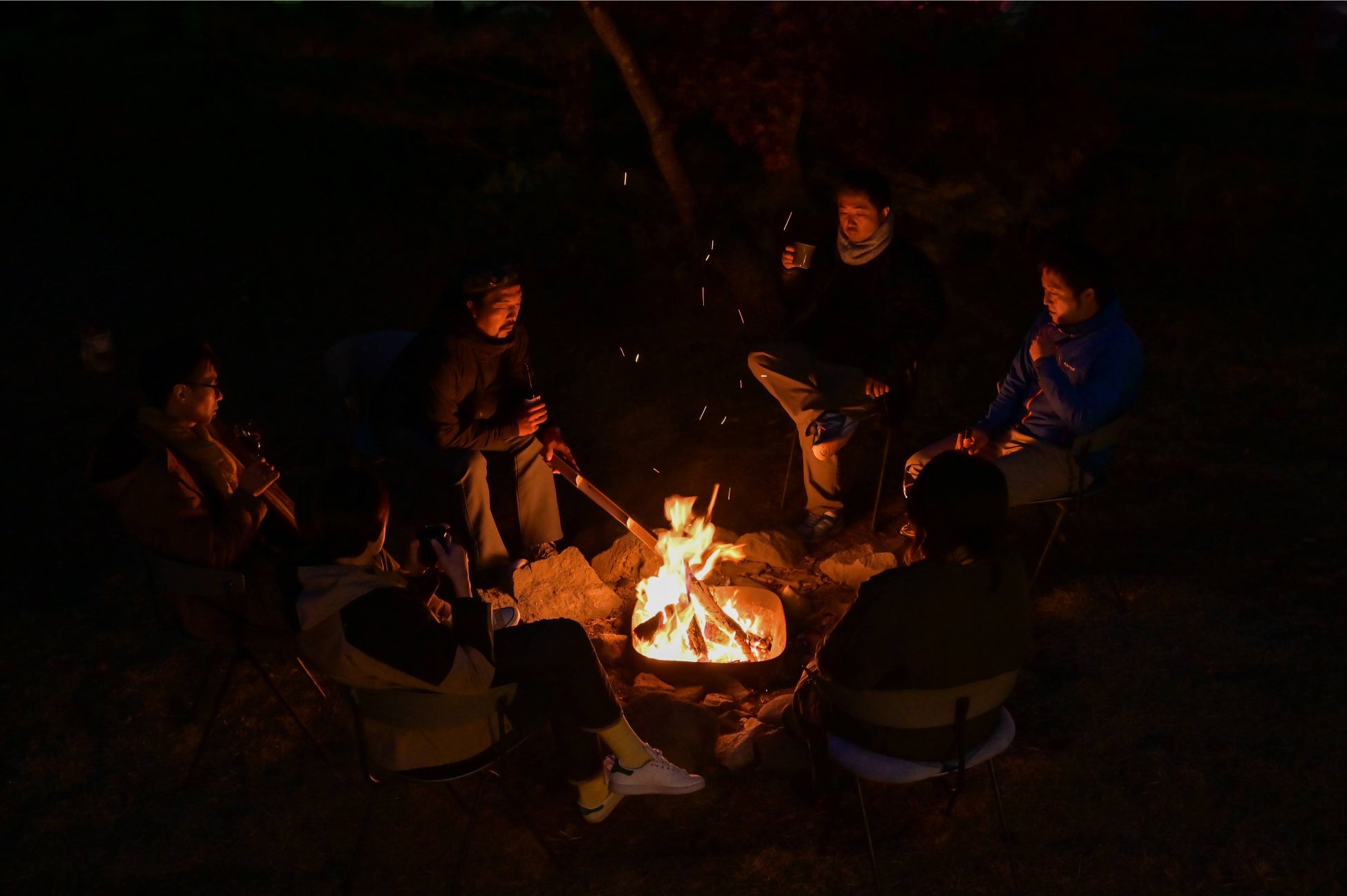 ❹焚き火=宿泊の方は焚き火を囲み、交流会を予定しています。伐採された副産物から作られたクラフトビールを片手に、火のある時間を楽しみましょう。