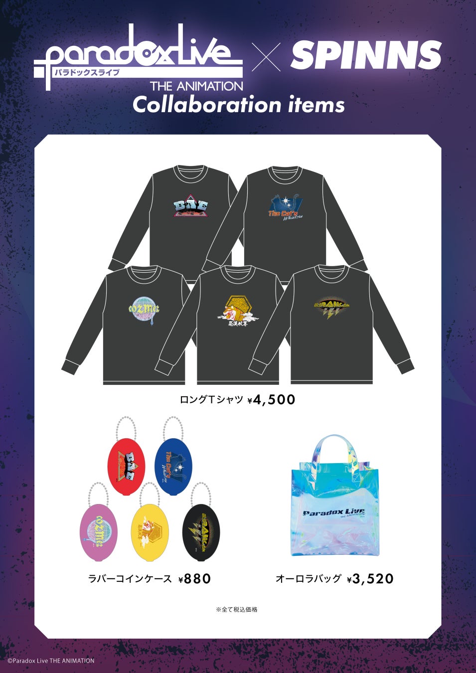 アパレル事業を展開する株式会社ヒューマンフォーラム(本社:京都市中京区 代表取締役会長:出路 雅明)が運営するアパレルブランド「SPINNS」は、TVアニメ『Paradox Live THE ANIMATION』とのコラボレーションアイテムの販売を決定した。Animax Cafe+で先行販売し、その後SPINNS一部店舗及び通販にも登場する。