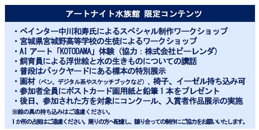 【仙台うみの杜水族館】目の前でみる、かく、つくる 生きものの魅力を色・形から楽しめる特別空間『アートナイト水族館』【2025年12月13日(土)17:30~20:30】