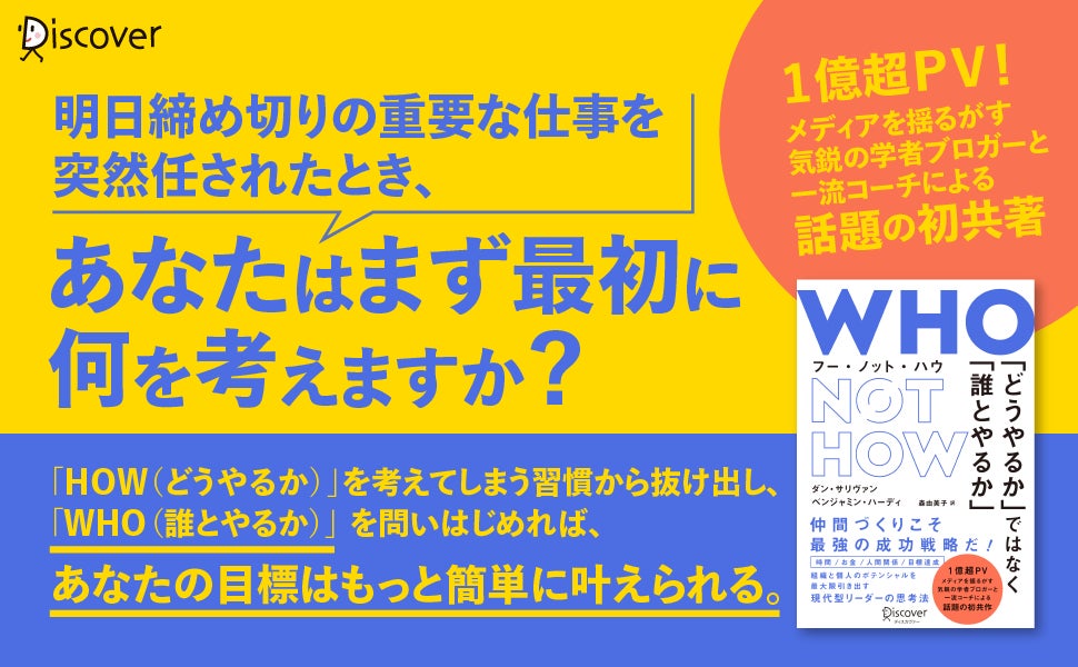 株式会社ディスカヴァー・トゥエンティワン(本社:東京都千代田区、取締役社長:谷口奈緒美)は2022年5月27日に『WHO NOT HOW 「どうやるか」ではなく「誰とやるか」』(ダン・サリヴァン、ベンジャミン・ハーディ 著、森由美子 訳)を刊行しました。