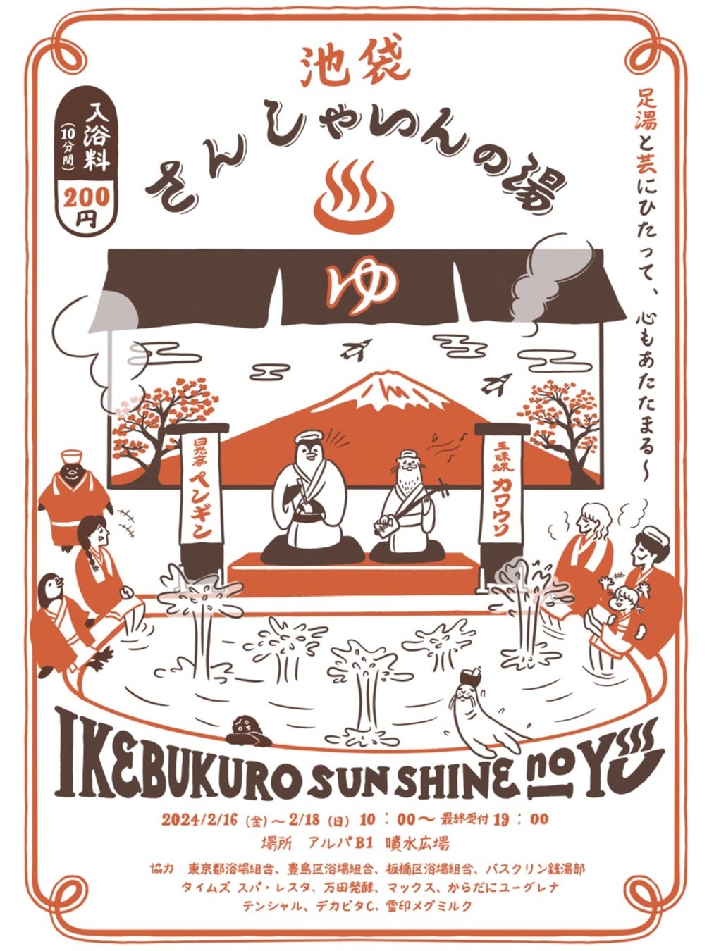 サンシャインシティ 噴水広場で癒しの足湯&落語・三味線鑑賞はいかが?インバウンドから「SENTO」としても注目! 豊島区内や東京都の銭湯情報・銭湯グッズが当たる抽選会も