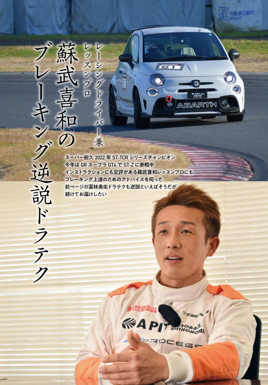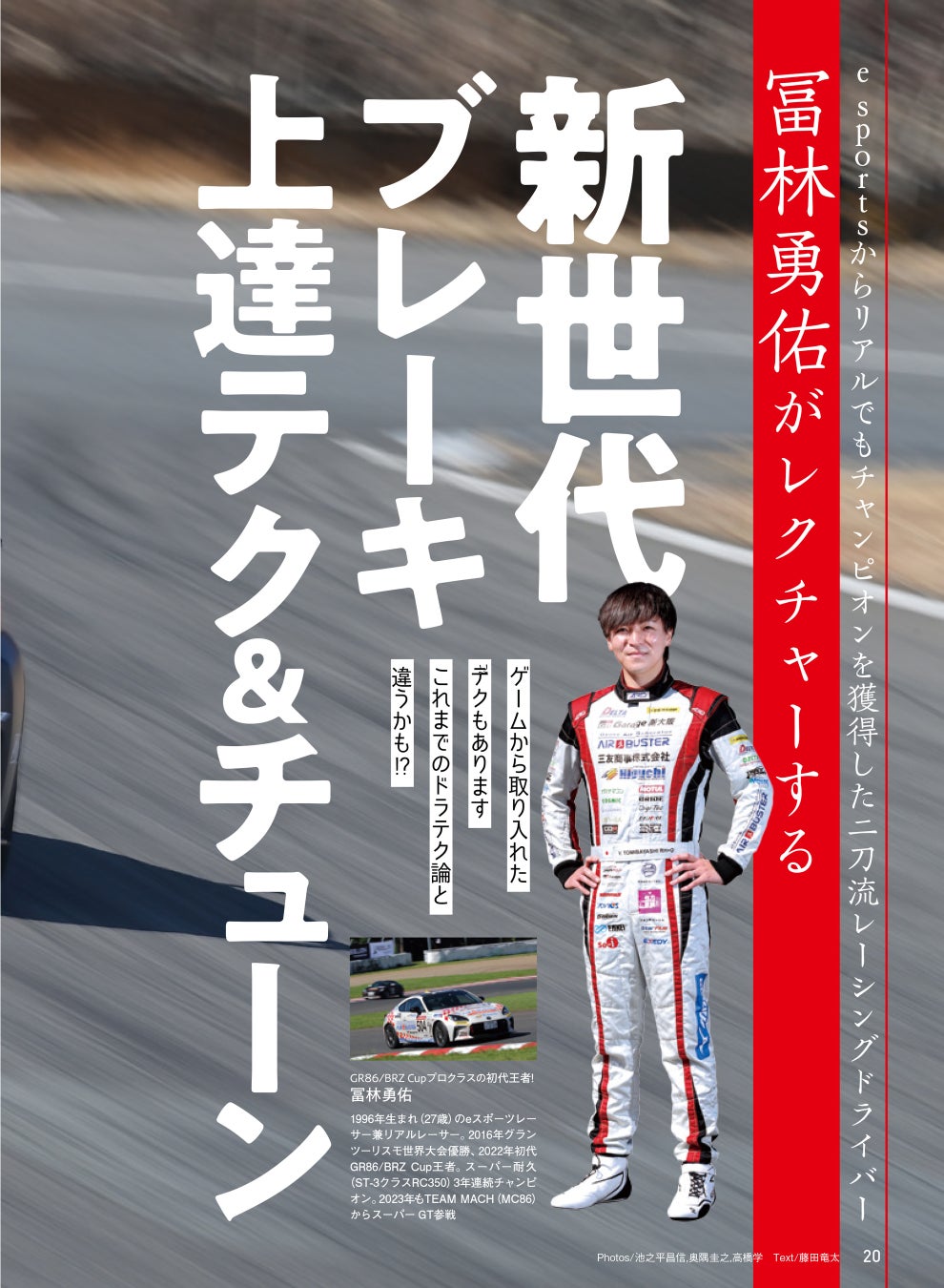 誌面特集はブレーキドラテク&チューニング。ドラテクは冨林勇佑と蘇武喜和で、いずれも既存のセオリーに捉われない令和的な展開に注目です。車種別特集はランサーエボリューション。中谷明彦が三菱AWC&S-AWCの先進性やそれを活かすドライビングについて語り、ランエボに強いプロショップが「第一線の4WDスポーツとして存分に楽しみながら長く乗るための」アドバイスをお届けします。筑波サーキットで催されたAttack TSUKUBA 2023やセントラルサーキットのCTACもクローズアップ!