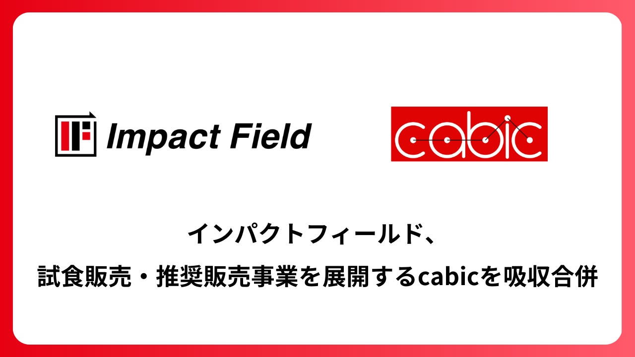 インパクトホールディングス株式会社 (本社:東京都渋谷区、代表取締役社長:寒河江 清人、以下 「インパクトホールディングス」 ) の連結子会社でフィールドマーケティング事業を展開するインパクトフィールド株式会社 (本社:東京都渋谷区、代表取締役社長:野口 将和、以下 「インパクトフィールド」 ) は、インパクトホールディングスの連結子会社で、試食販売や推奨販売などセールスプロモーションに特化した人材サービスを提供するcabic株式会社 (本社:京都府京都市中京区、代表取締役社長:吉本 篤史、以下 「cabic」 ) を2025年2月1日付で吸収合併することになりましたのでお知らせいたします。本件は、インパクトフィールドを存続会社とする吸収合併方式であり、cabicは解散いたします。