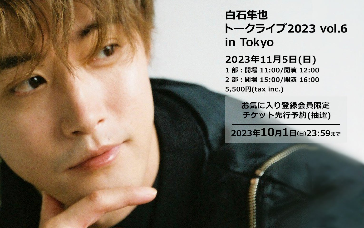 【白石隼也】トークライブ2023 vol.6 in Tokyo 追加開催決定!本人メッセージも!
