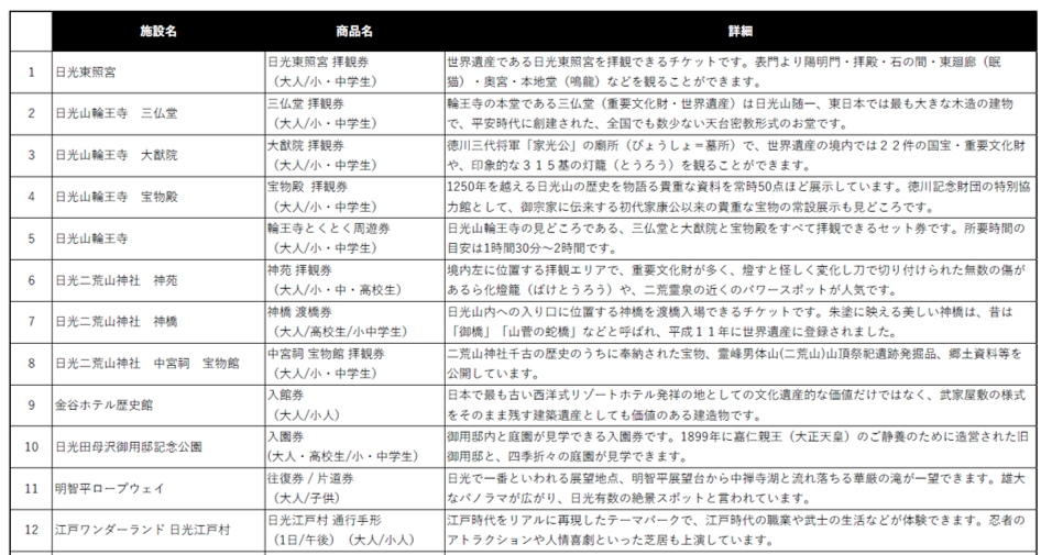 ■「NIKKO MaaS」連動観光コンテンツ ※順次拡充予定