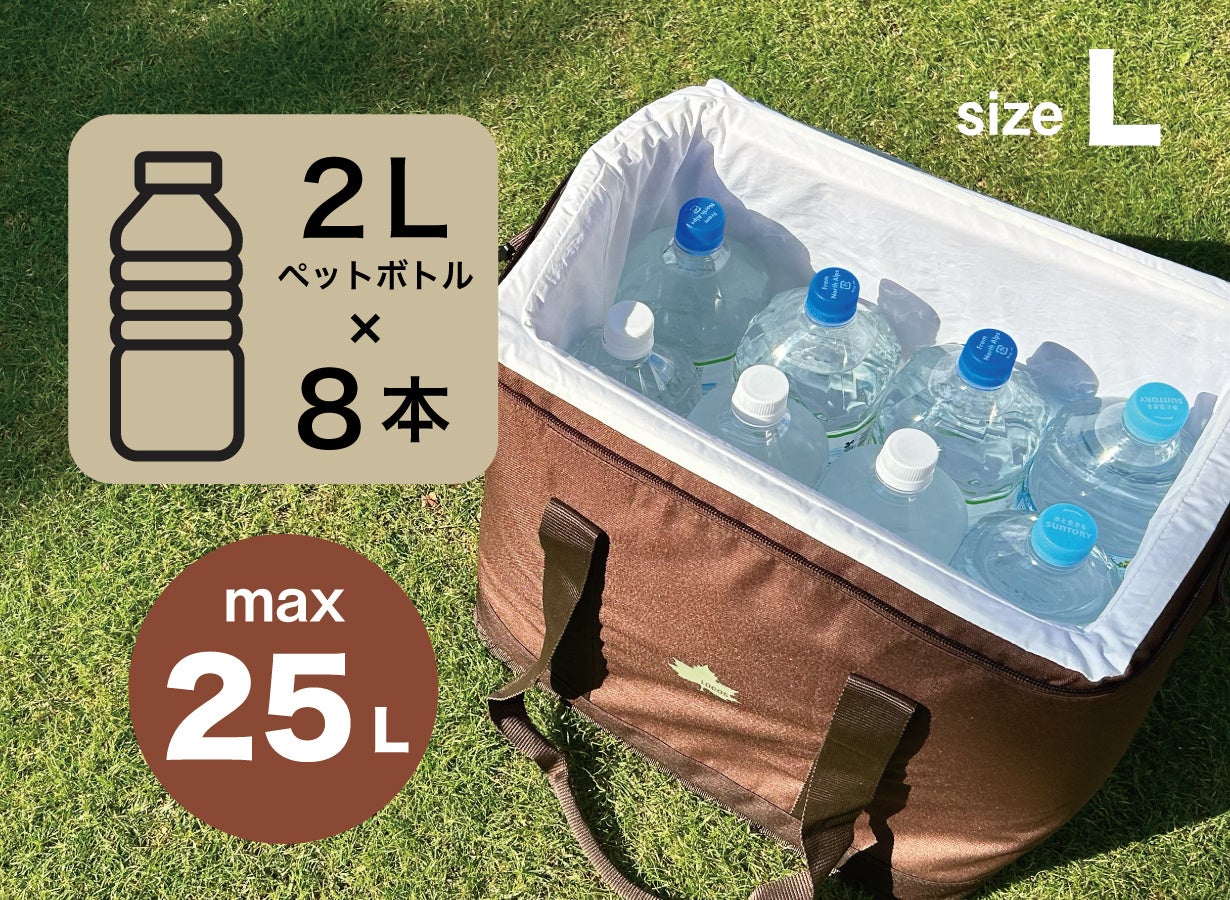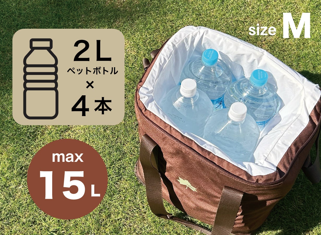 2Lペットボトル4本が入るMサイズと、2Lペットボトル8本が入るLサイズの2サイズをラインアップします。両サイズとも、別売りの強力保冷剤「氷点下パック(R)」がぴったり収まるポケットがフタ裏に装備されています。また、今回のMakuakeでの先行販売限定で「氷点下パック(R)」が付いたお得なセットもご用意しております。