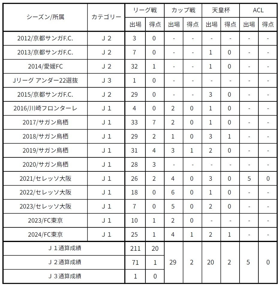 □出場記録(2024シーズン終了時点)