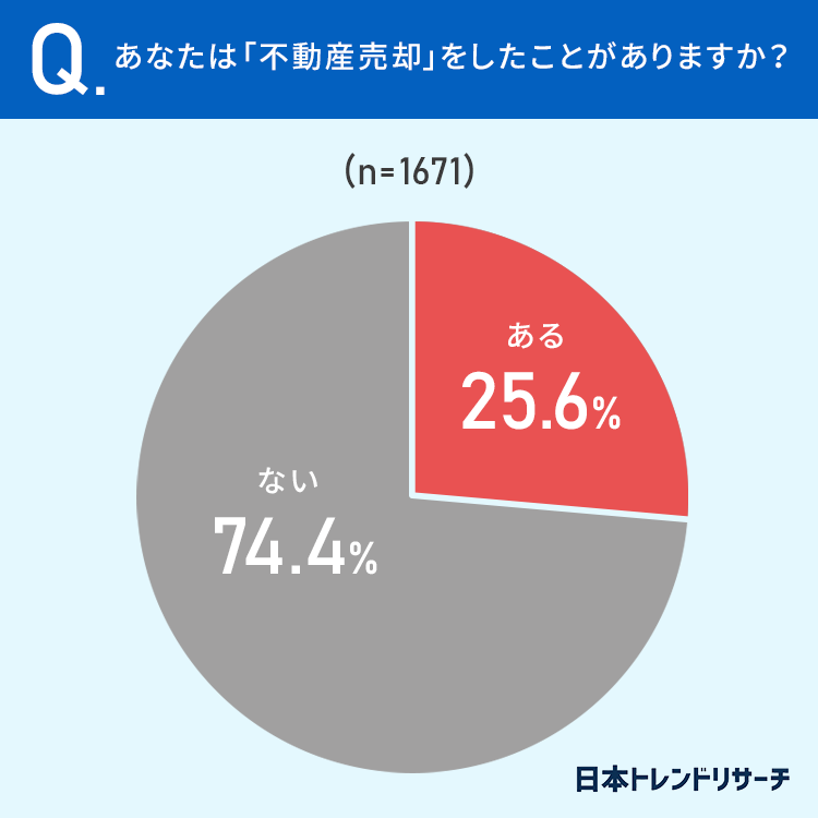 25.6%の方が、「不動産売却」をしたことが「ある」と回答しています。