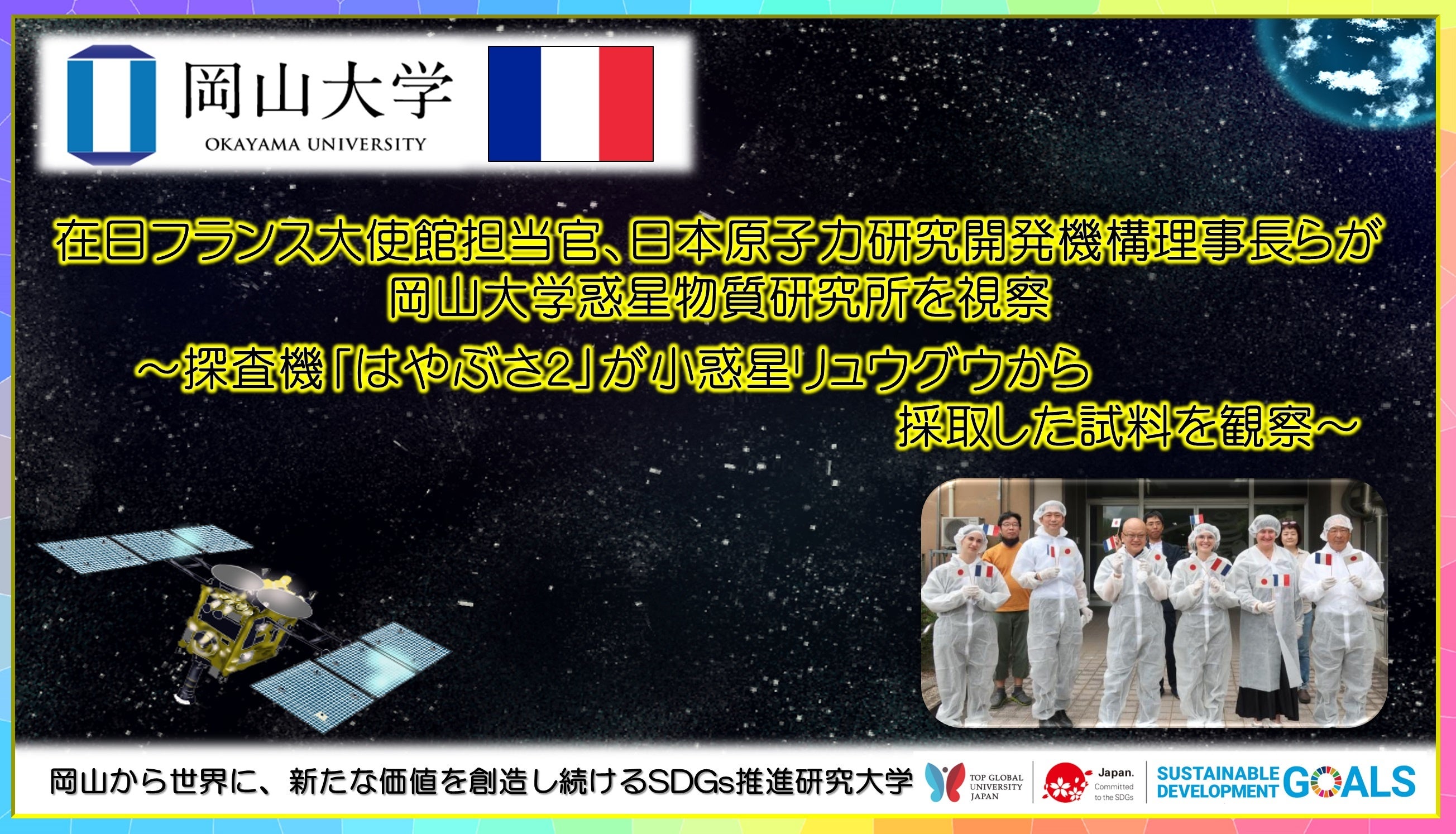 【岡山大学】在日フランス大使館担当官、日本原子力研究開発機構理事長らが惑星物質研究所を視察 ~探査機「はやぶさ2」が小惑星リュウグウから採取した試料を観察~