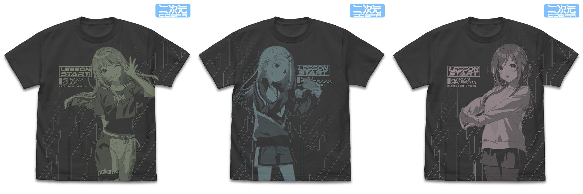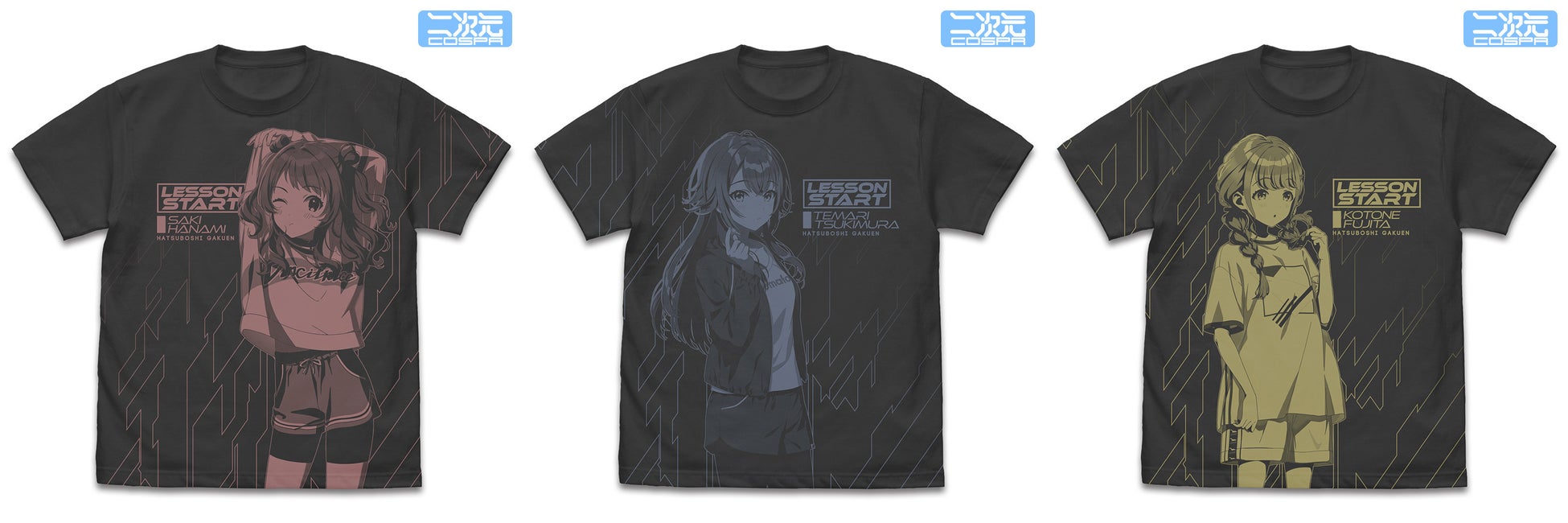 「花海咲季」たち9人それぞれのオールプリントTシャツやパスケース、「初星学園」リールキーホルダーなどプロデューサー必携の新商品が二次元コスパから登場。