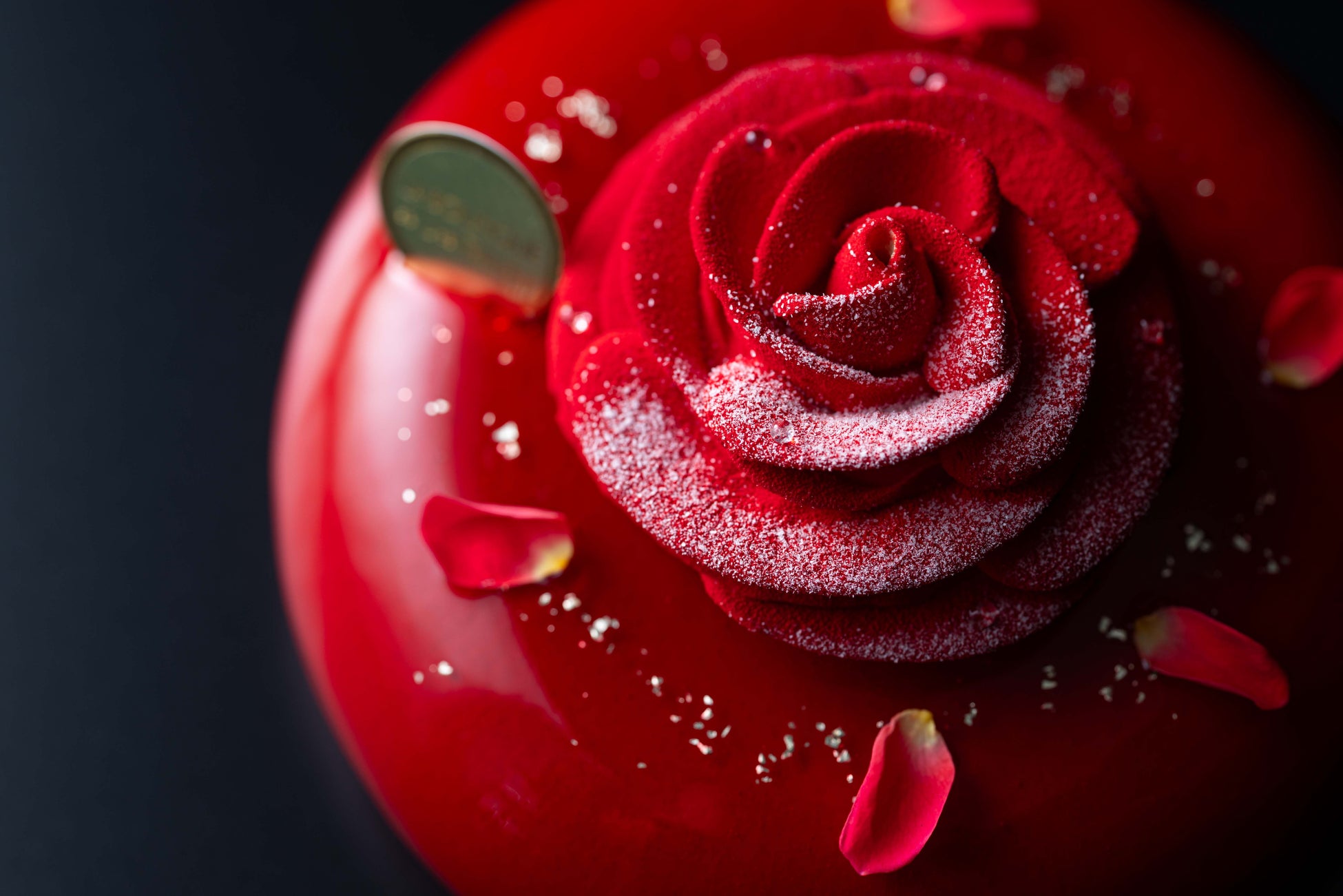 マリー・アントワネットが愛したバラの花びらとフランス ヴェルサイユの王立菜園から採れた新鮮なりんごで香り付けした「マリーアントワネットティー」を使用し、チョコレートのムースにバラ風味のラズベリーのジュレを閉じ込めました。