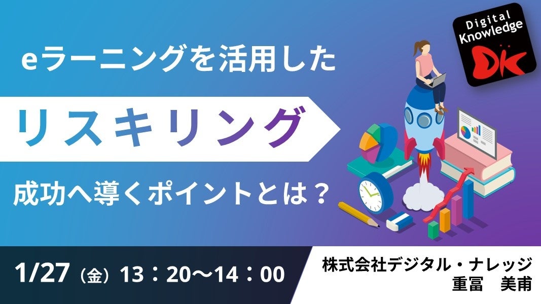 - デジタル・ナレッジ登壇セミナー「eラーニングを活用したリスキリング ~成功へ導くポイントとは?」