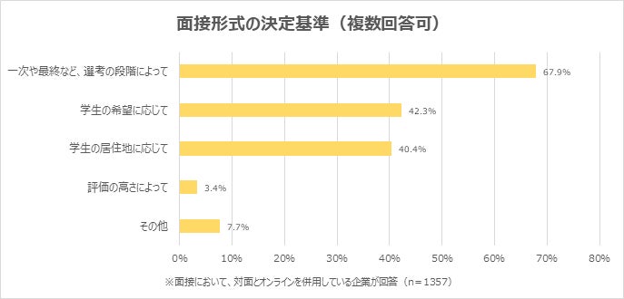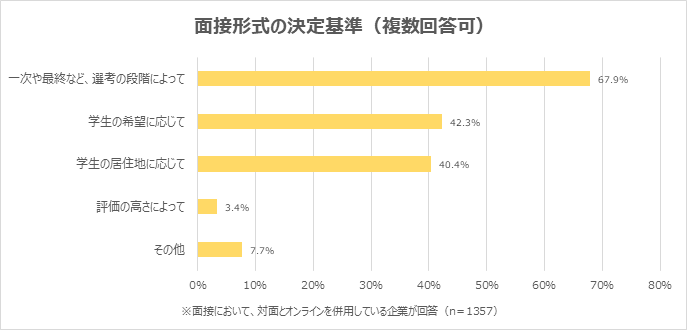 7割超の企業が、面接で「対面とオンラインを併用」。面接形式の決定基準は「一次や最終など、選考の段階によって」が最多/採用担当者アンケート