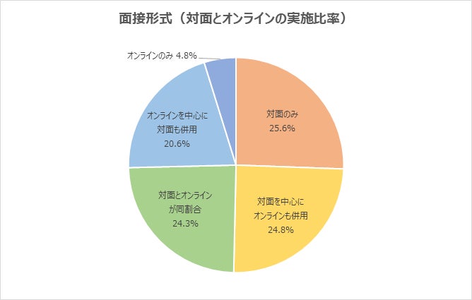 コロナ禍で、WebセミナーやWeb面接など、採用活動をオンラインで実施するケースが増加しました。一方、オンラインでは「社風や仕事内容への理解を深めにくい」「企業の雰囲気を伝えにくい」といった声が、学生・採用担当者双方から出ています。コロナ禍で三度目となる採用活動において、企業は面接をどのように実施するのか。面接の実施形式について調査しました。
