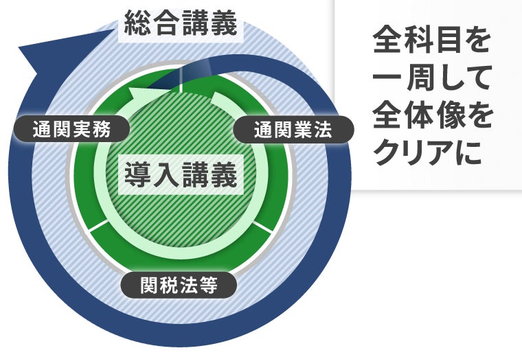 関税法等と通関実務のように結びつきのある科目も関連付けながら学習できるので、科目間の相互理解が深まり、双方の科目の得点アップが狙えます。