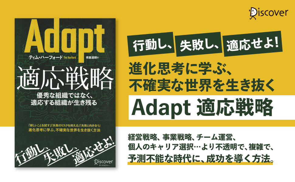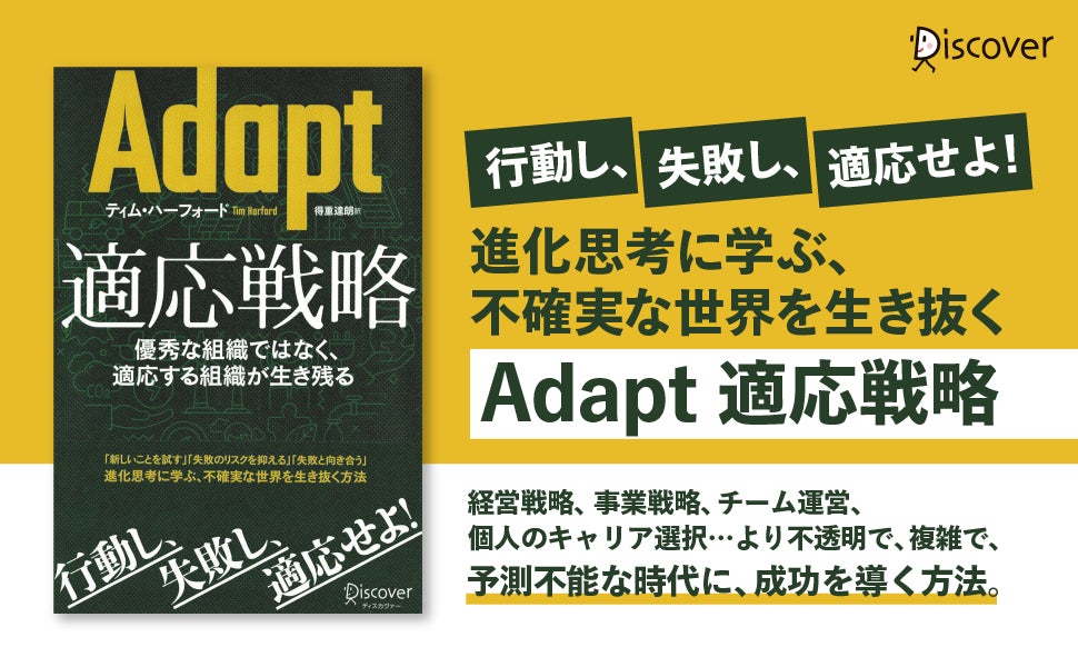株式会社ディスカヴァー・トゥエンティワン(本社:東京都千代田区、取締役社長:谷口奈緒美)は2022年5月27日に『Adapt 適応戦略 優秀な組織ではなく、適応する組織が生き残る』(ティム・ハーフォード 著、得重達朗 訳)を刊行します。