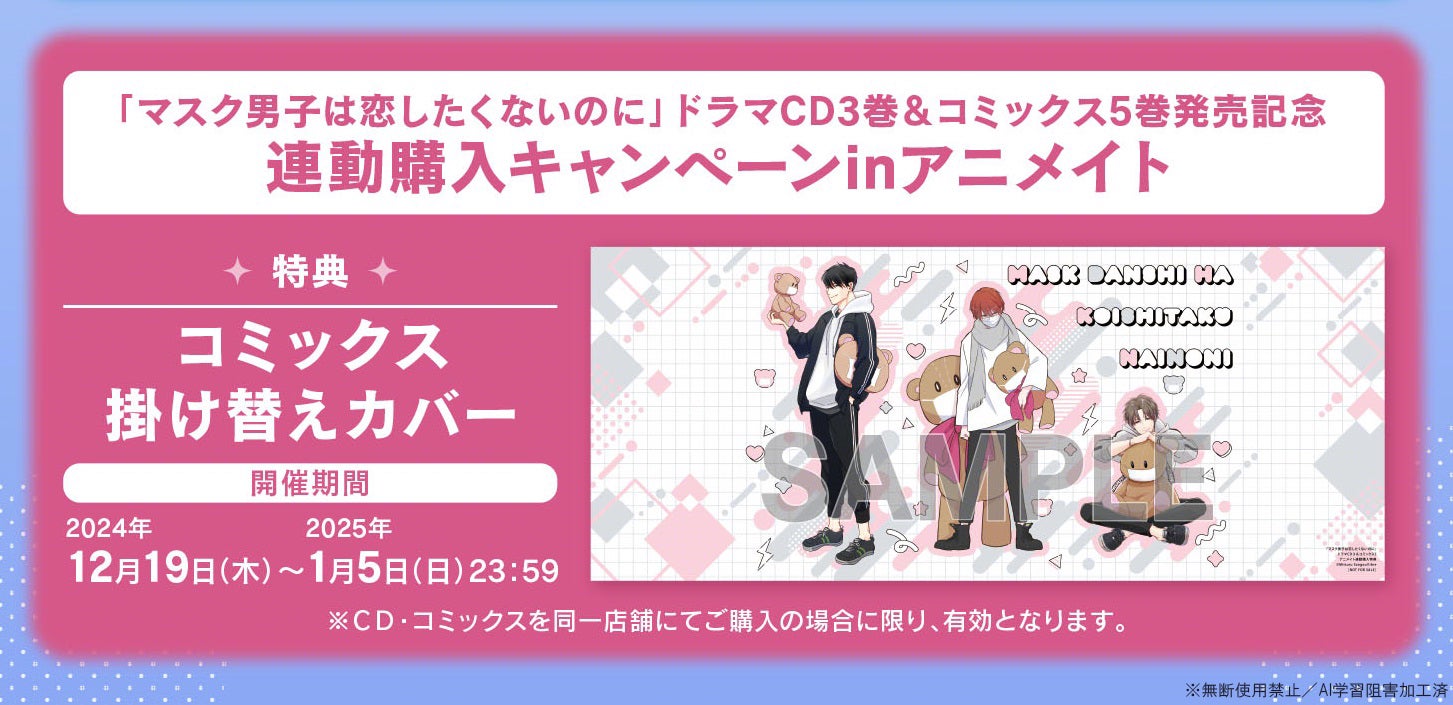 特装盤CDは参号ミツル描き下ろしマンガ小冊子つき★ 同日発売コミックス「マスク男子は恋したくないのに 5 敦賀編」との連動購入キャンペーンも開催!