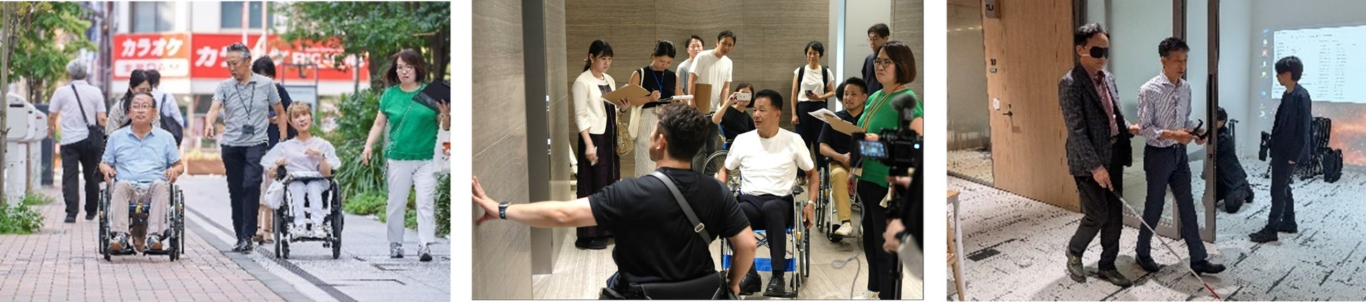 このたびのアクセシビリティ・マップ制作にあたり、2025 年7 月より、計3 回にわたり当事者を交えたワークショップを実施しました。「移動に困難を抱えやすい障がい」に配慮するため、「車いすご利用の方」「視覚障がいのある方」を対象とし、社内外併せて延べ116 名が参加しています。