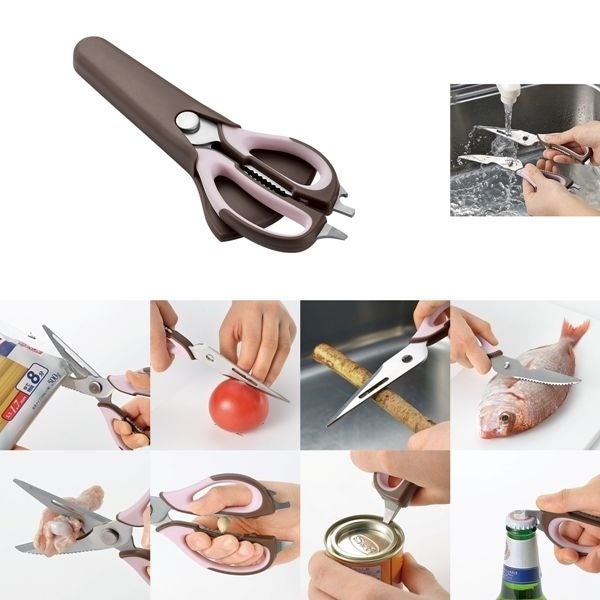 これひとつで使い方8通り!はさみの他、皮むきやうろことりなどに使用できます。つなぎ部分で2つに外せるので、隅々まで洗えて清潔に保てます。