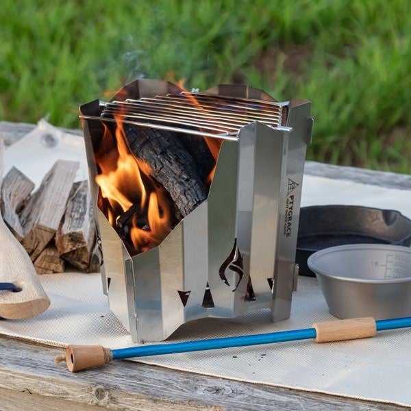 独創的なデザインと機能性を兼ね備えた少し大きめなソロキャンプ用の焚き火台。持ち運びが簡単にでき、調理時の火力調整などもしやすく設計されています。