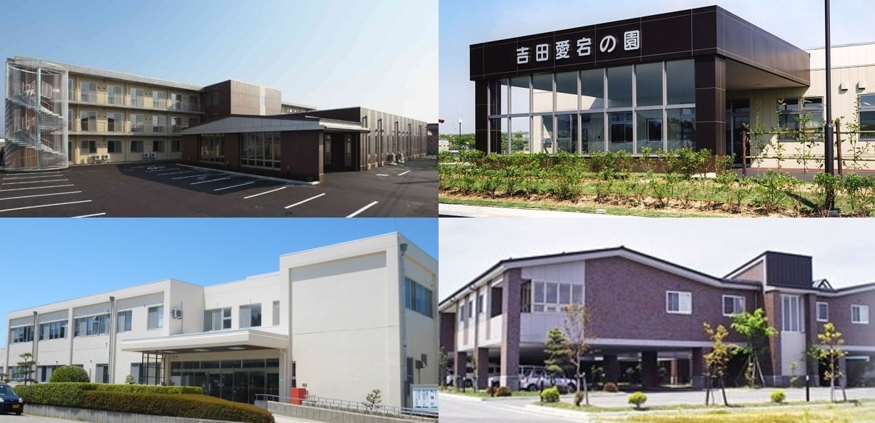 大山台ホーム(左下)、新潟北愛宕の園(左上)、中之口愛宕の園(右下)、 吉田愛宕の園(右上)