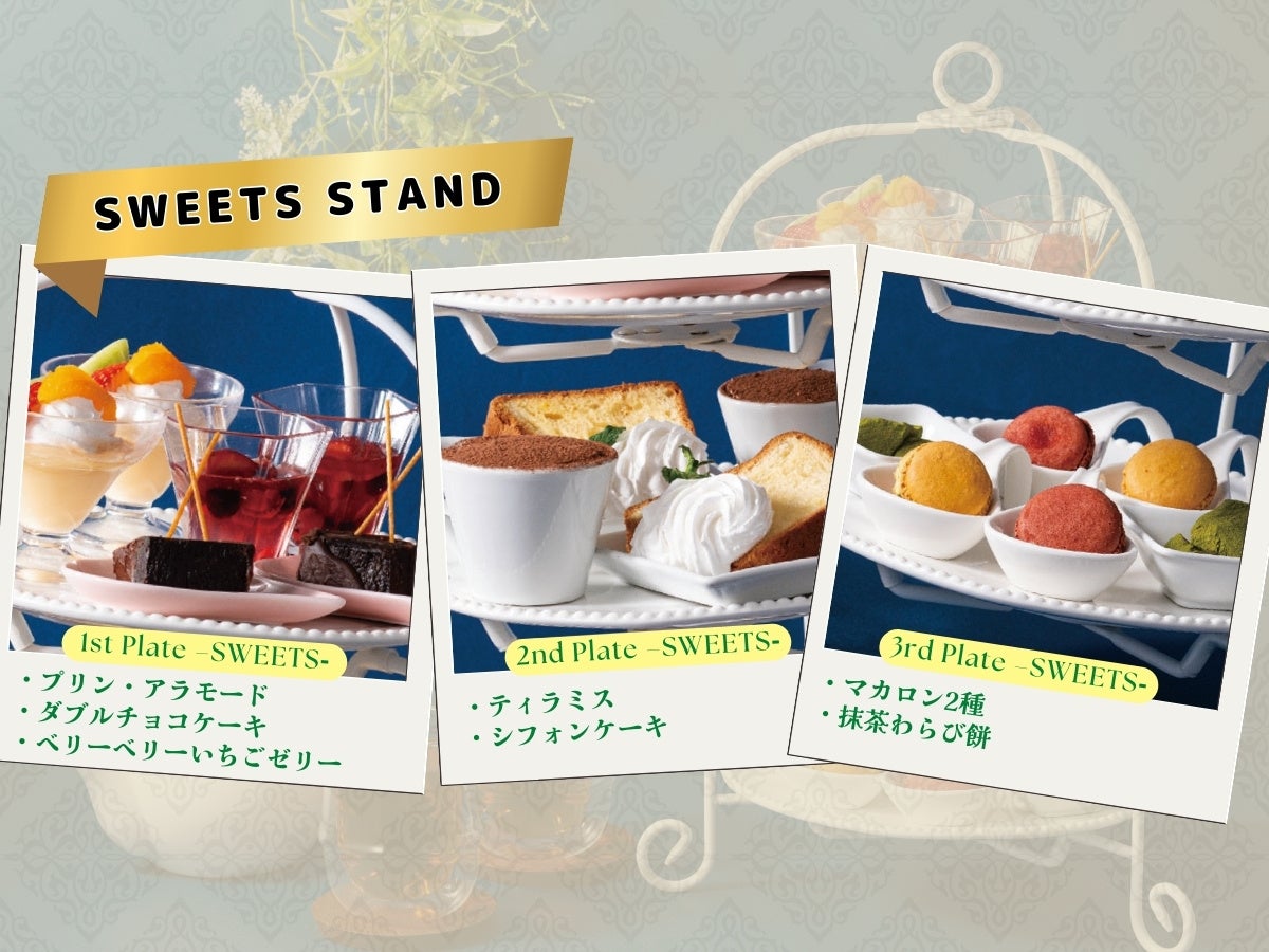 ●ブッフェ料理プラス、以下のオーダーメニューとドリンクバー、そして『スイーツスタンド』が付いたコース!