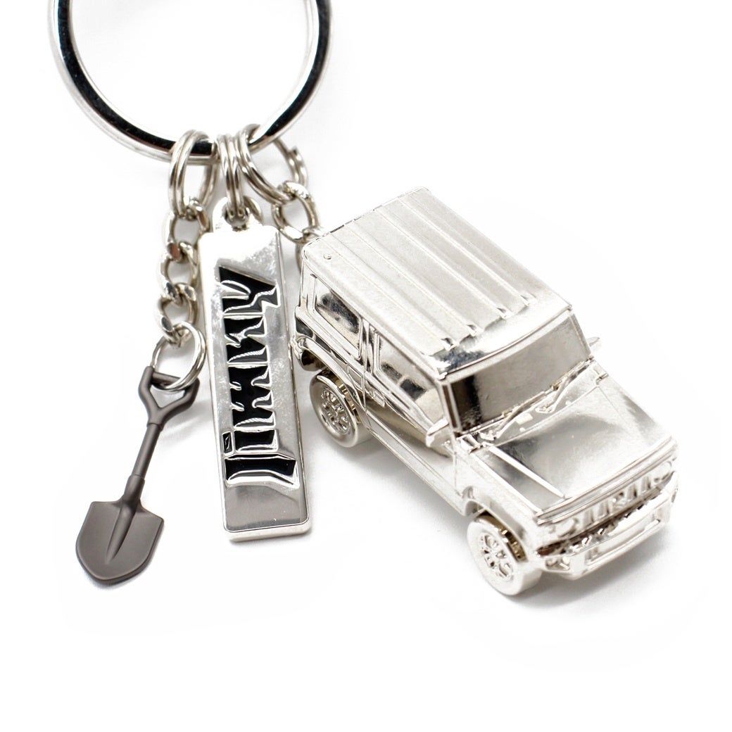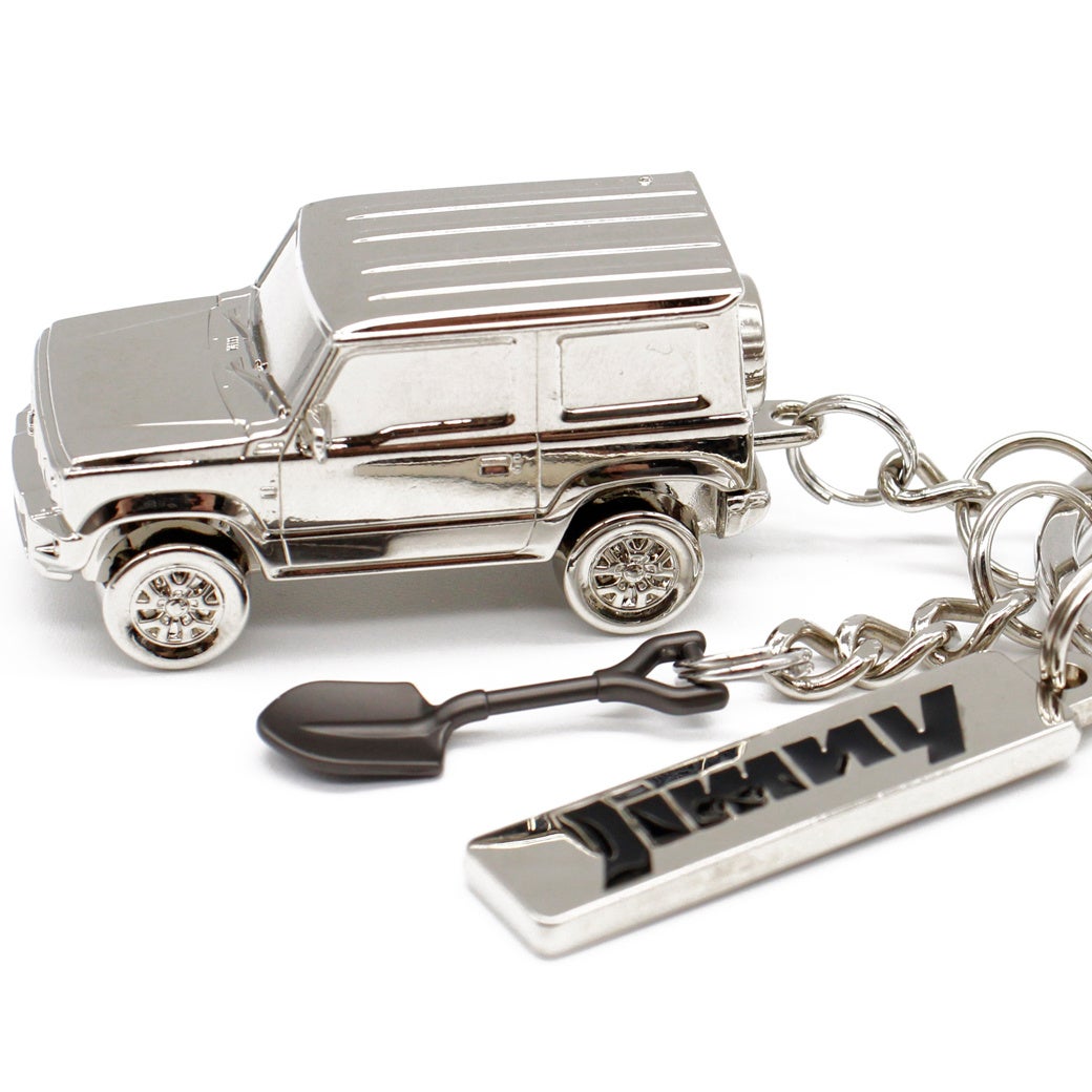 遊び心たっぷりのデザインでありながらも、高級感のある仕上がりの「SUZUKI JIMNY キーチェーン」は、年齢層を問わずジムニーファンが楽しめる作り。