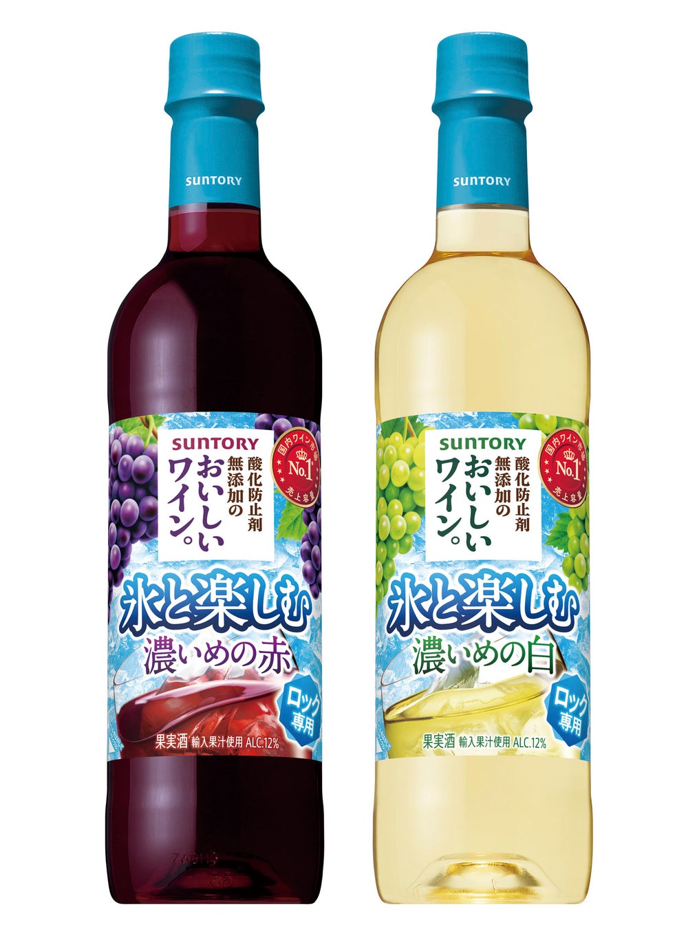 サントリー(株)は、「氷と楽しむおいしいワイン。(酸化防止剤無添加)」2種のパッケージをリニューアルし、4月中旬以降順次、全国で新発売します。