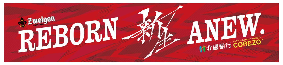 今季のツエーゲン金沢のスローガンは「新生」!文字通り、「新たに生まれ変わる」気概と決意をもって、J2昇格に挑みます。この「新生」のロゴと今季のユニフォーム柄を使用した真っ赤なタオルマフラーを先着8,000名様にプレゼント!