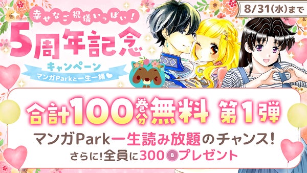 祝「マンガPark」5周年! 8/1(月)から「幸せなご祝儀いっぱい! 5周年記念キャンペーン ~マンガParkと一生一緒~」スタート!