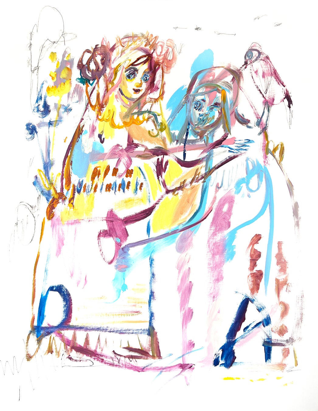 母子をモチーフに絵を掘ろうと描き続けていますが、そのうちに人魚をみつけ、動物も混ざったり、草木も混ざったり。