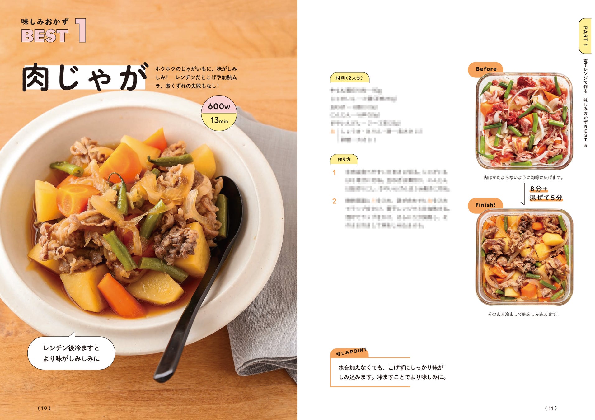 本書はそんな電子レンジの長所を生かした、味しみしみでおいしいおかずのレシピを”電子レンジの達人”ほりえさちこさんが提案する1冊です。