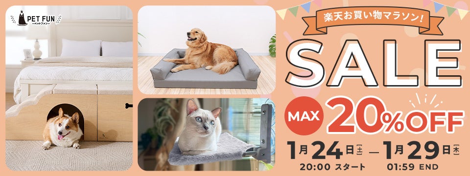 PetFun(ペットファン)楽天市場店では、1月29日(木)まで楽天お買い物マラソンセールを開催。