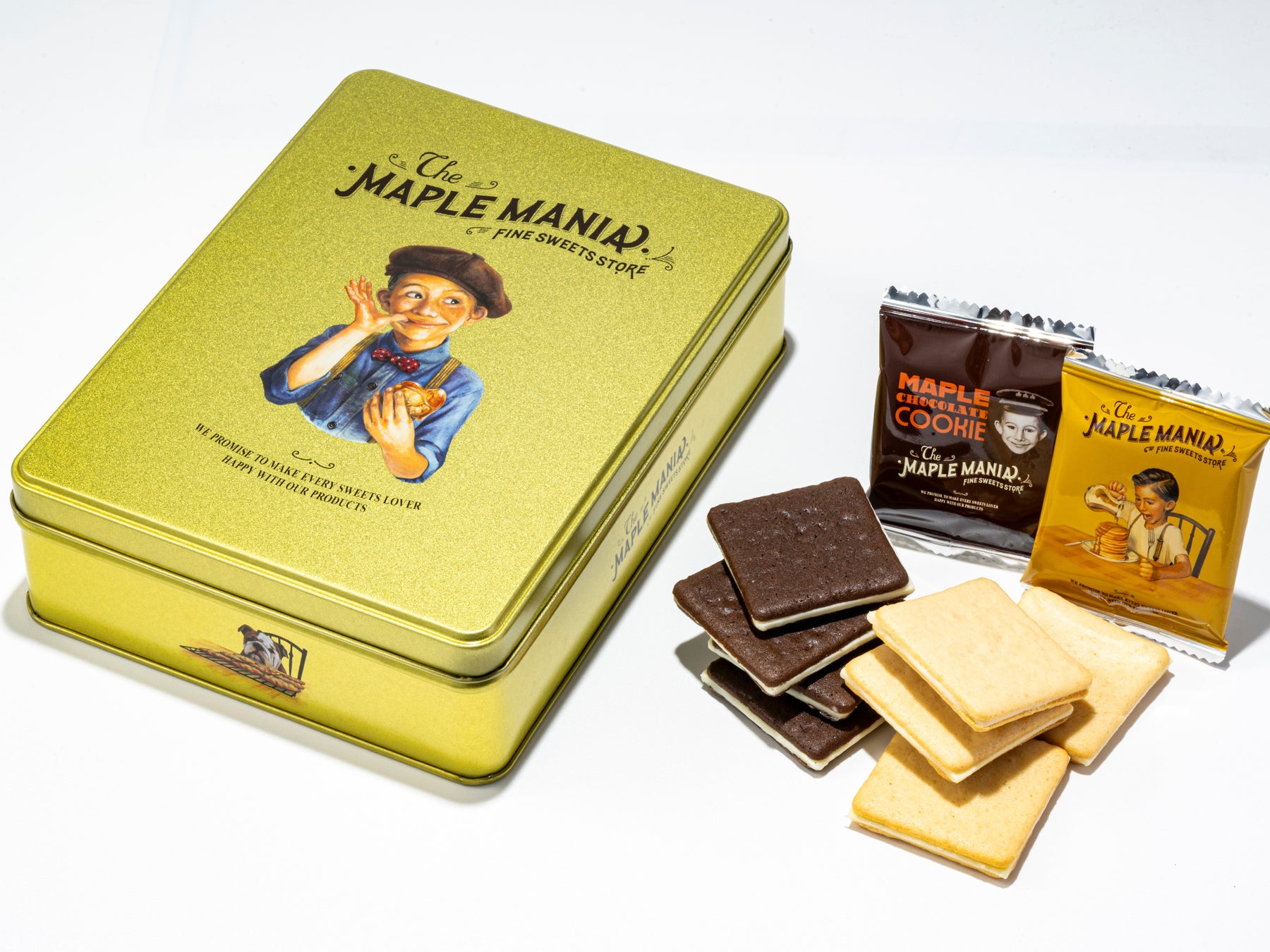 メープルクッキー詰合せ缶 2種各8枚入 2,500円/ザ・メープルマニア(1F改札内 吹き抜けエリア)