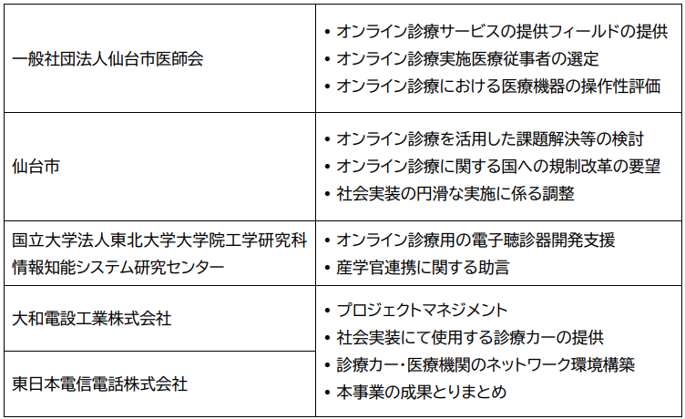 実証時に得られた結果より、4G(LTE)が使用可能なエリアにおいて、オンライン診療実施に適する車両や医療機器を採用し、本年度は、国のデジタル田園都市国家構想交付金(デジタル実装タイプTYPE2)を活用し、仙台市の「防災環境“周遊”都市・仙台モデル推進事業」※4デジタル田園都市国家構想の一環として、一部地域に社会実装いたします。