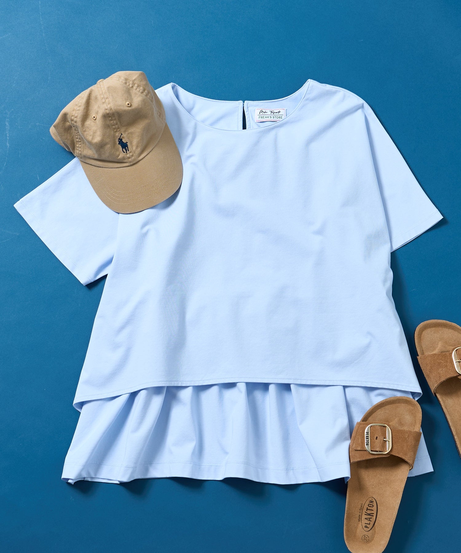 今季のトレンドであるレイヤードスタイルを1枚で再現し、コーディネートに迷う時間を解消する時短とタイパを両立した頼れるTシャツブラウス。