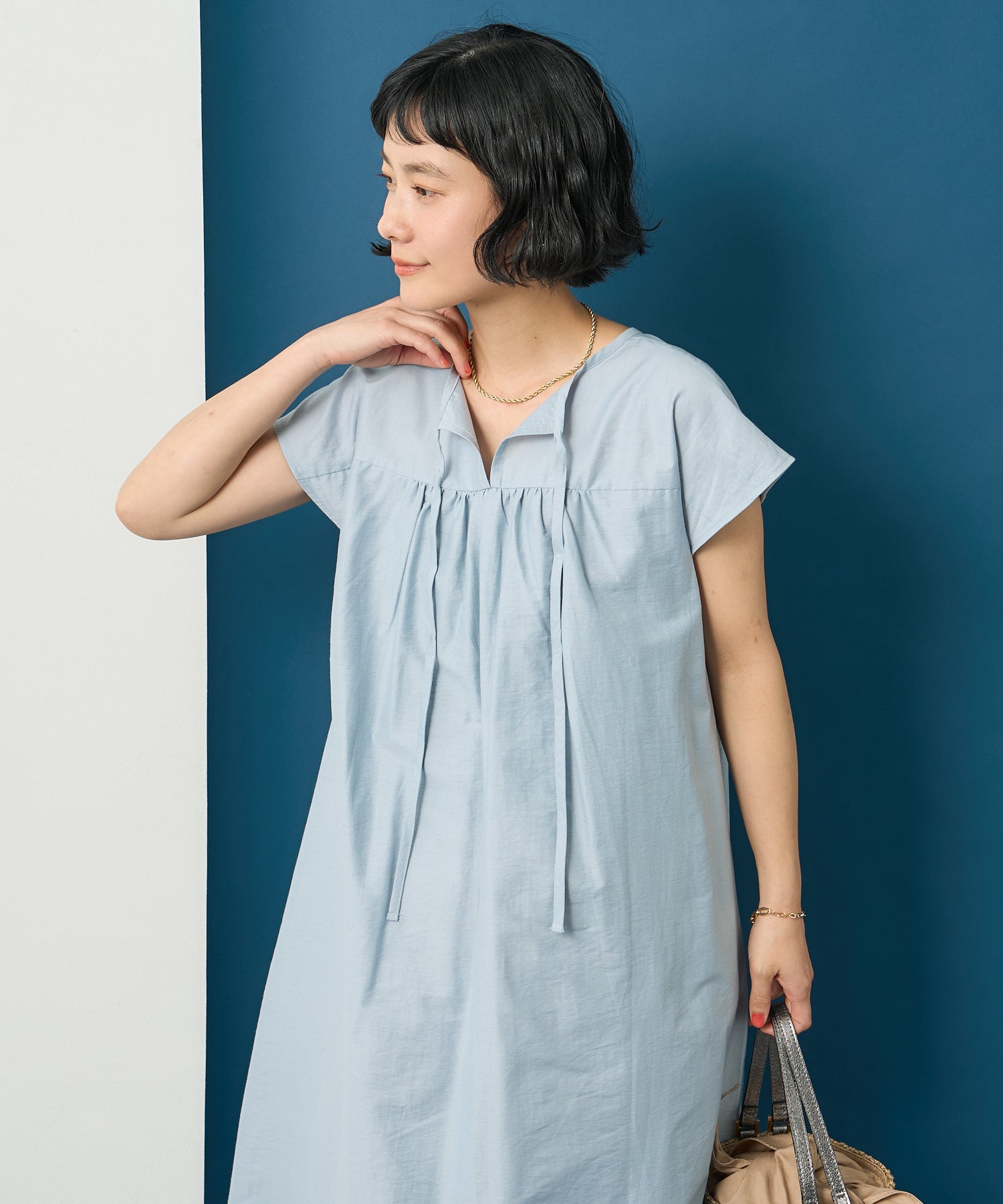 接触冷感/UVカット ヘンリーネックフレアワンピース ¥8,998(税込)