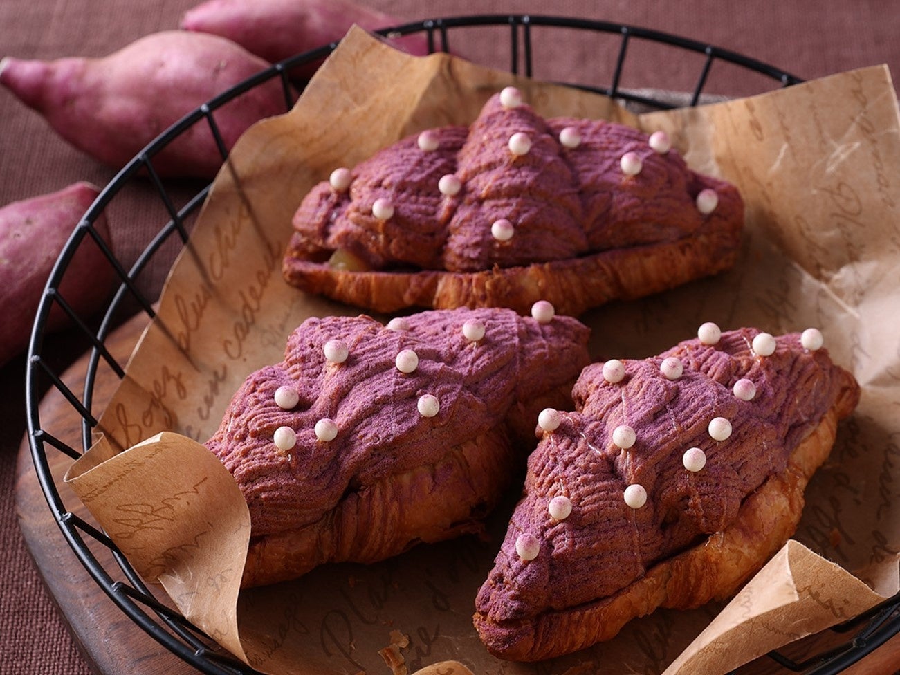 濃厚な紫芋クリームと栗甘露煮をサンドした、サクサク食感のクロワッサン。