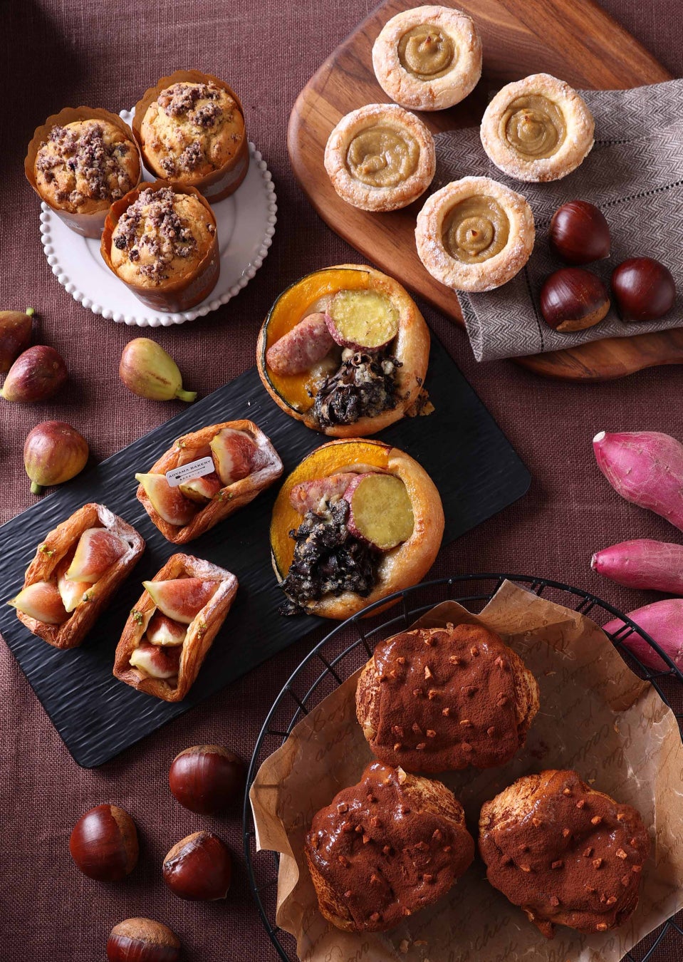 さらに、デニッシュ生地にカスタードクリームとフランボワーズジャムを合わせ、フレッシュのイチジクをのせた「イチジクのデニッシュ」、やわらかなブリオッシュ生地に自家製マロンクリームを絞った「栗のミニクリームパン」、鳴門金時とオレンジの果肉を練りこんだしっとり食感のスコーンなど、魅力溢れるラインナップをご用意しております。