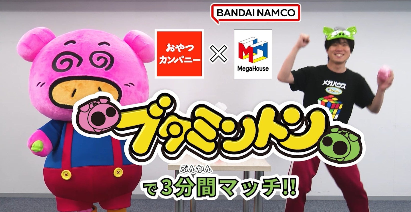 おやつカンパニー×メガハウス が初コラボ!『ブタメンくんとブタミントン対決!!』