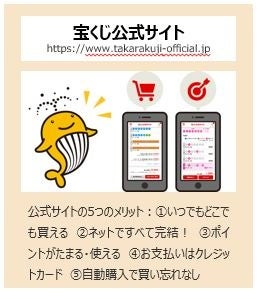 公式サイトならPCやスマホなどからいつでもどこでも購入でき、抽せん結果の確認から当せん金の受け取りまで、すべてインターネット上で完結。未換金の失効がなく、継続購入による買い忘れ防止もでき、さらに宝くじの購入100円=1ポイントの「宝くじポイント」が獲得でき、ポイントでの宝くじ購入もできます。