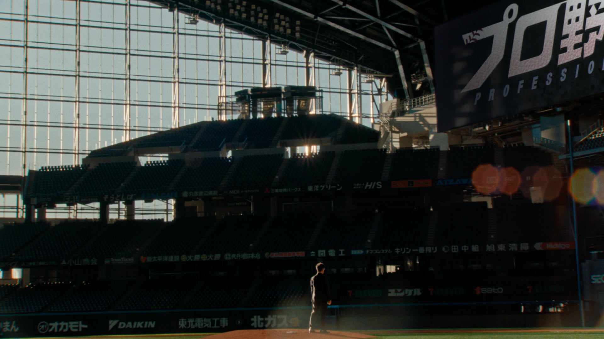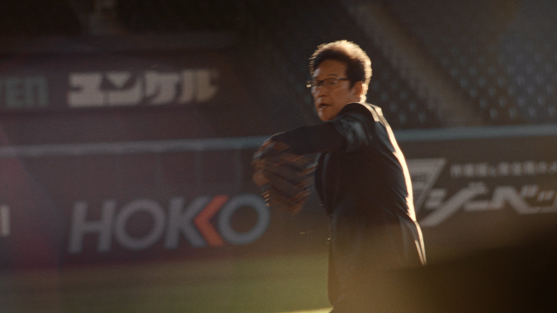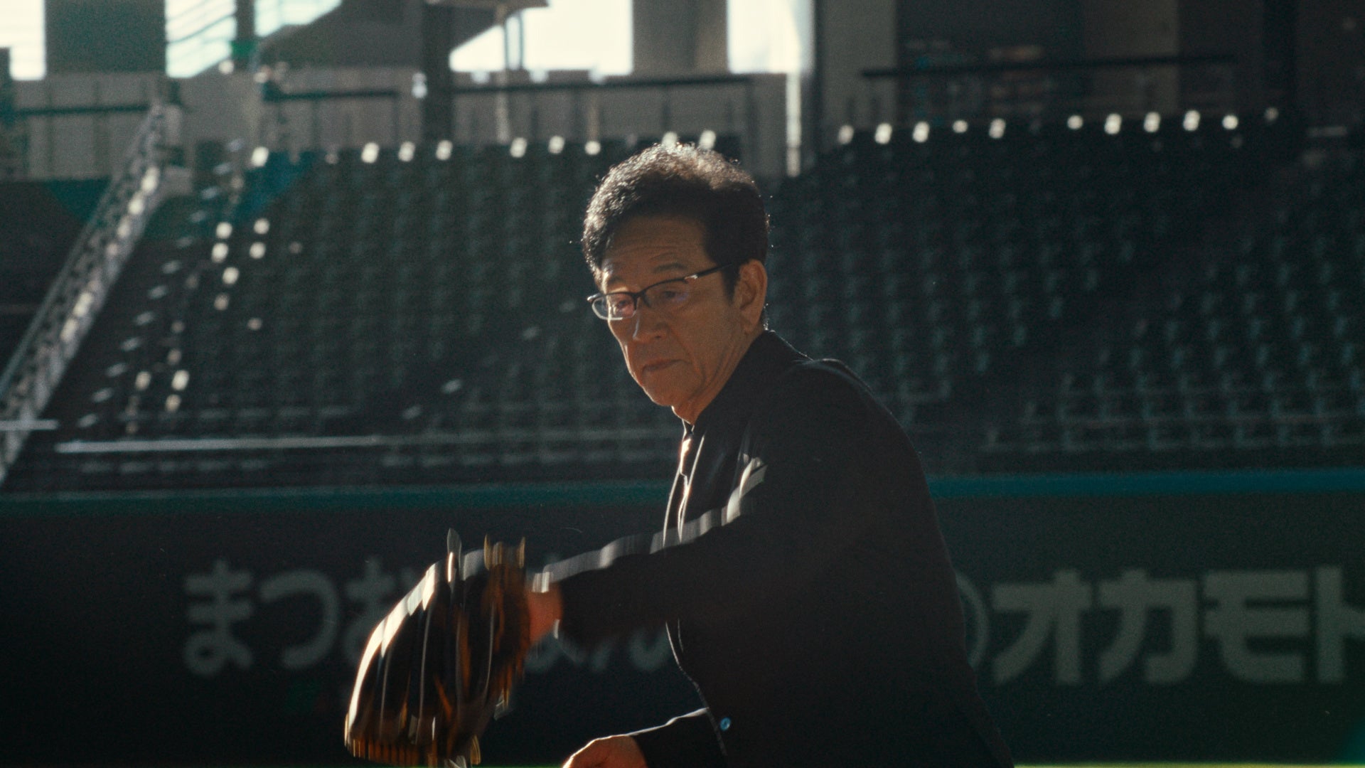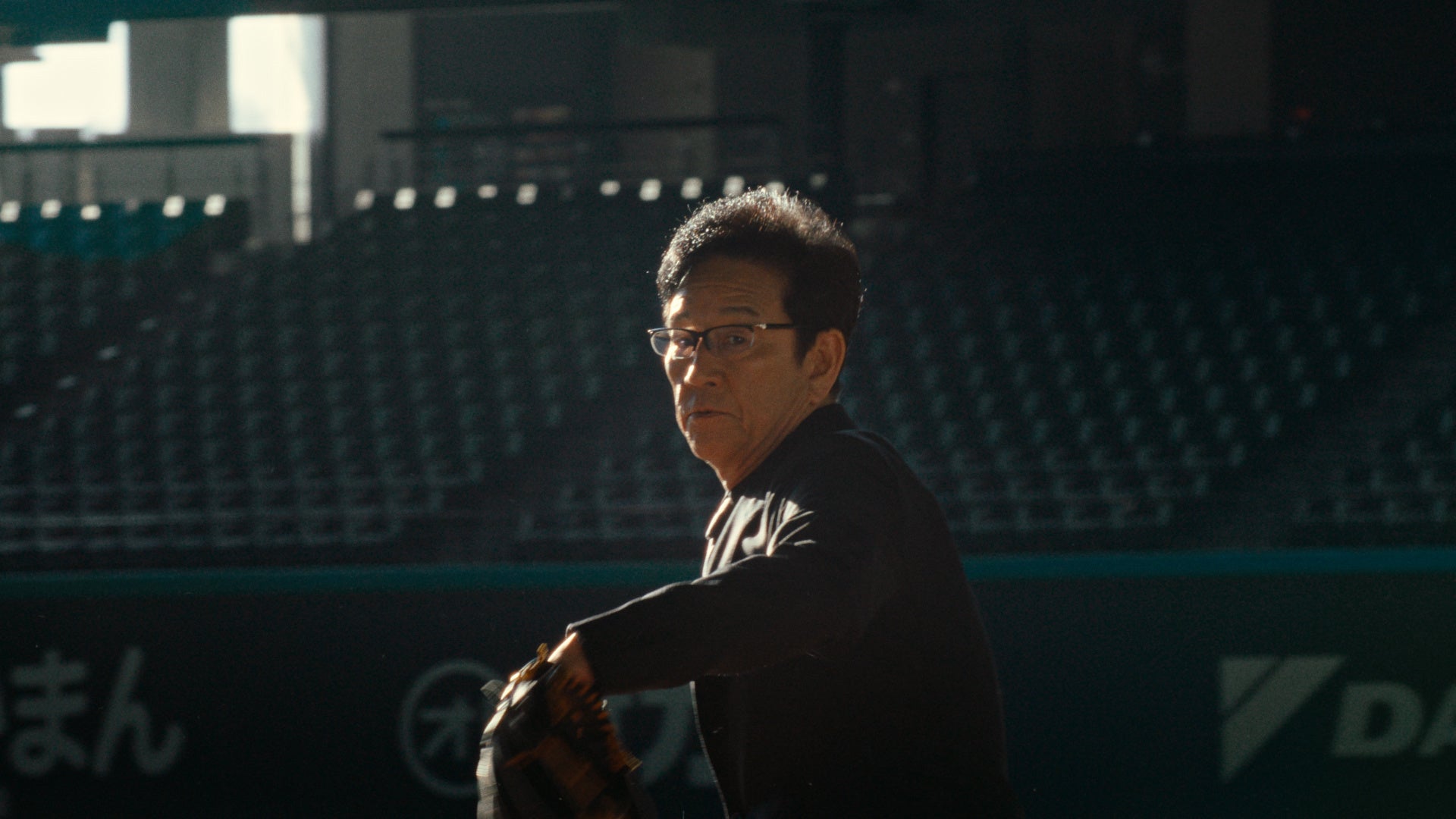 通常、球場で監督がプレーすることはありませんが、本CMでは栗山さんがマウンドに立ちピッチングするシーンもございます。