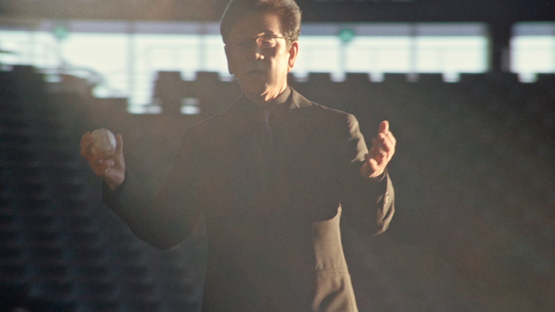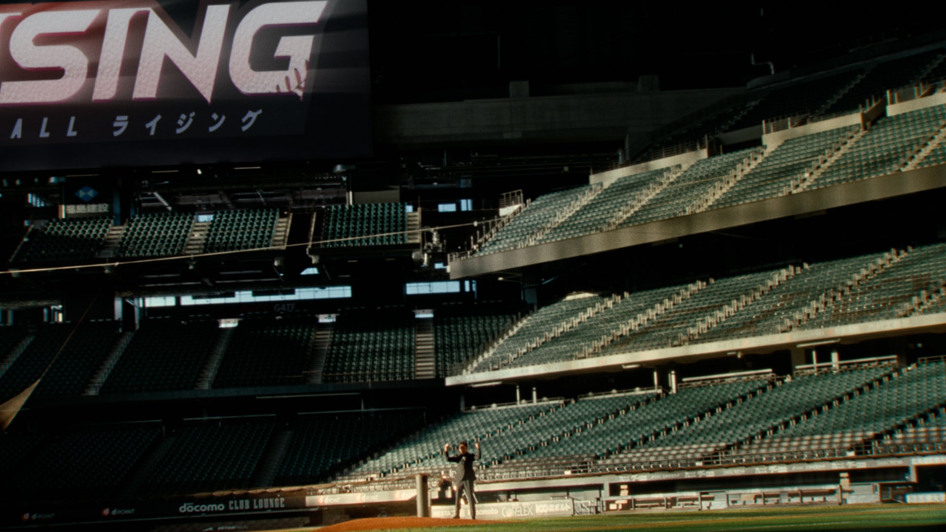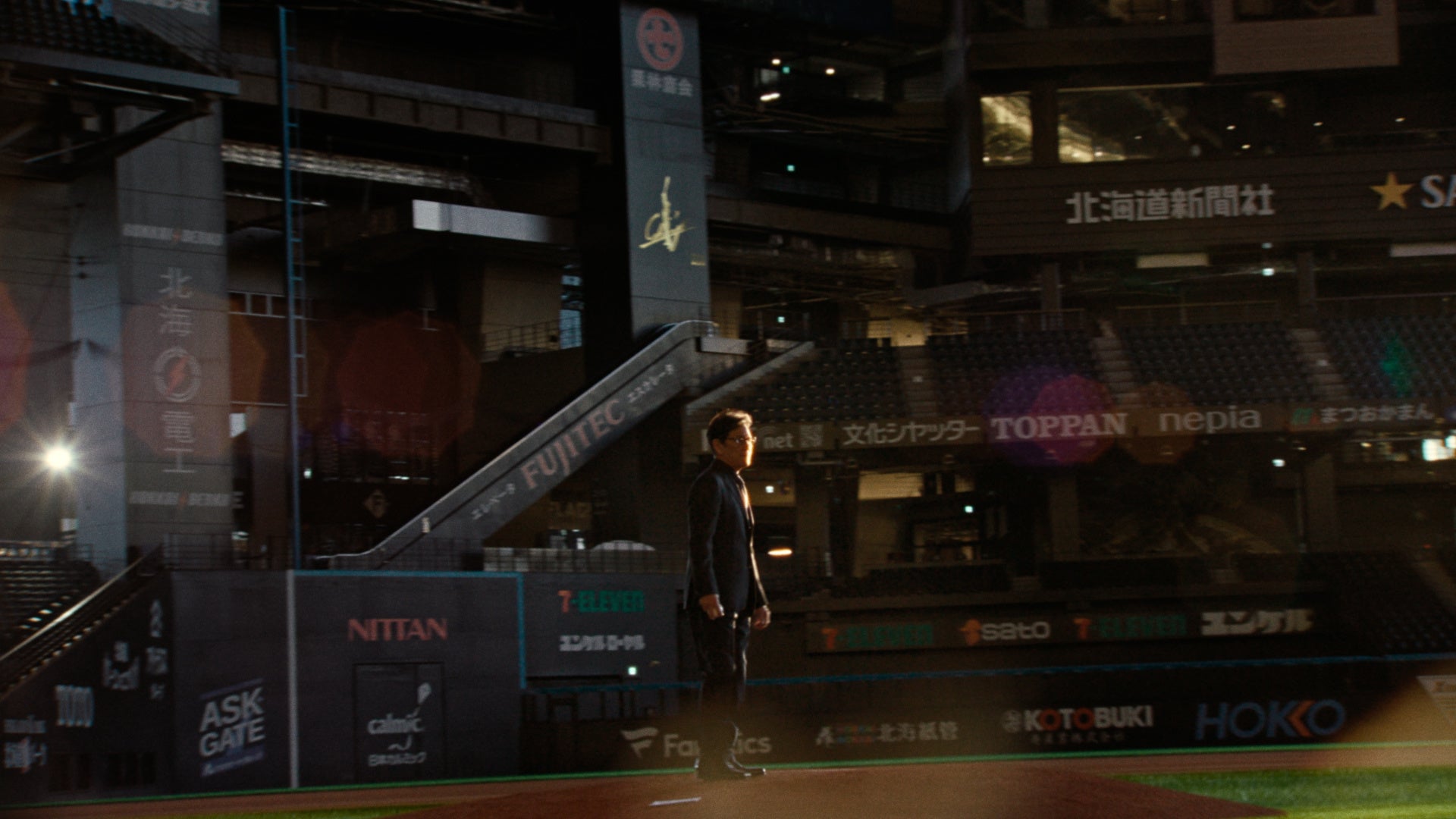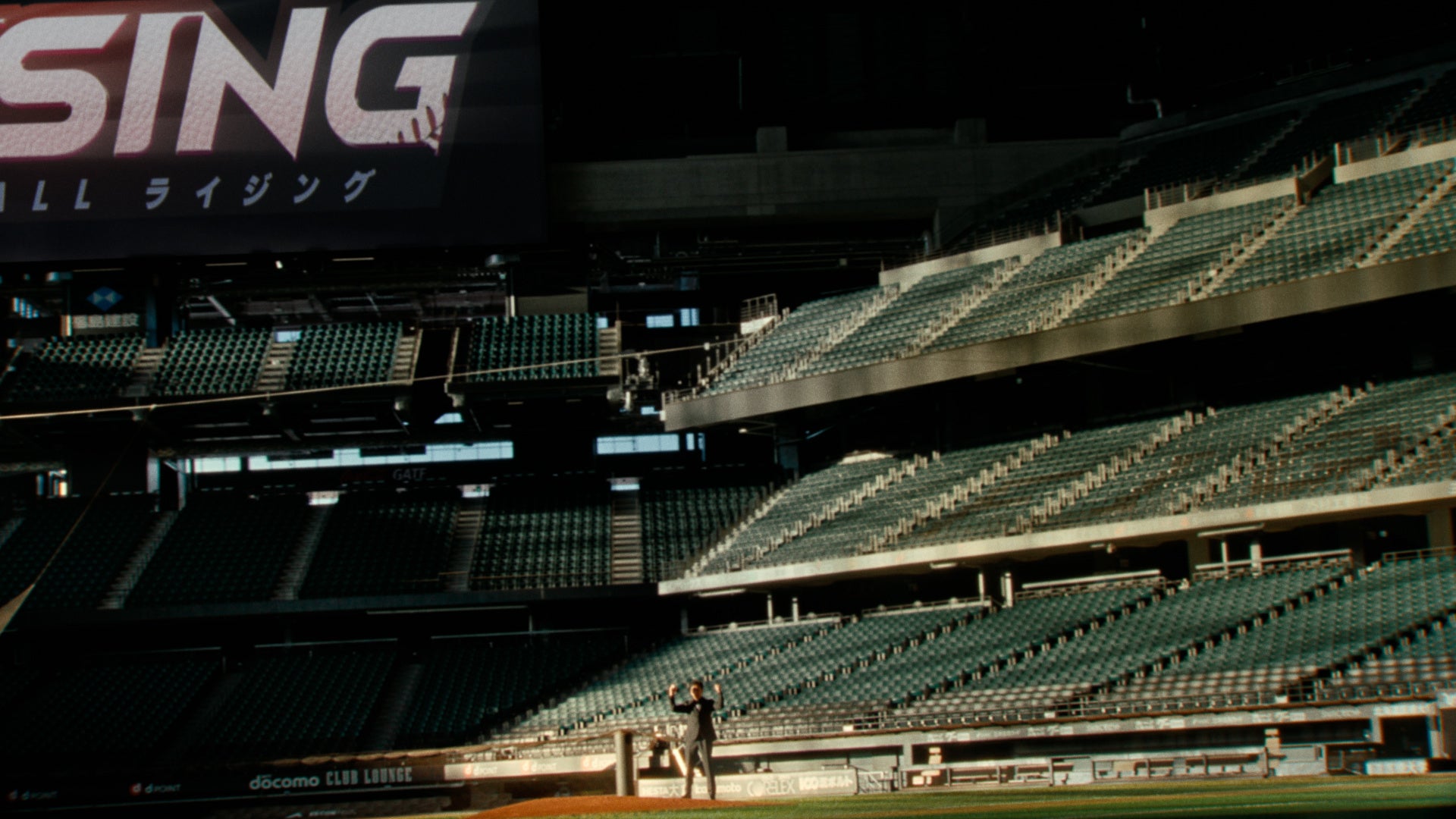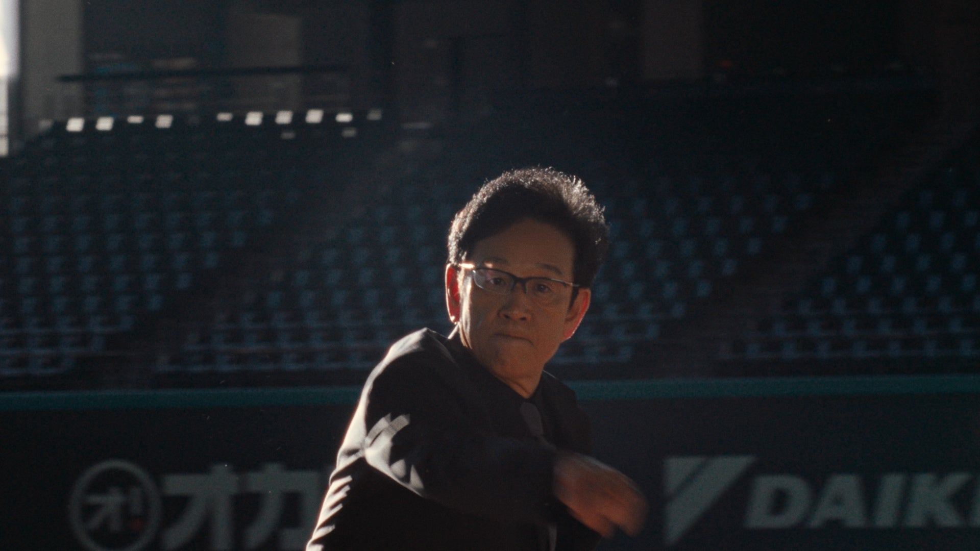 通常、球場で監督がプレーすることはありませんが、本CMでは栗山さんがマウンドに立ちピッチングするシーンもございます。