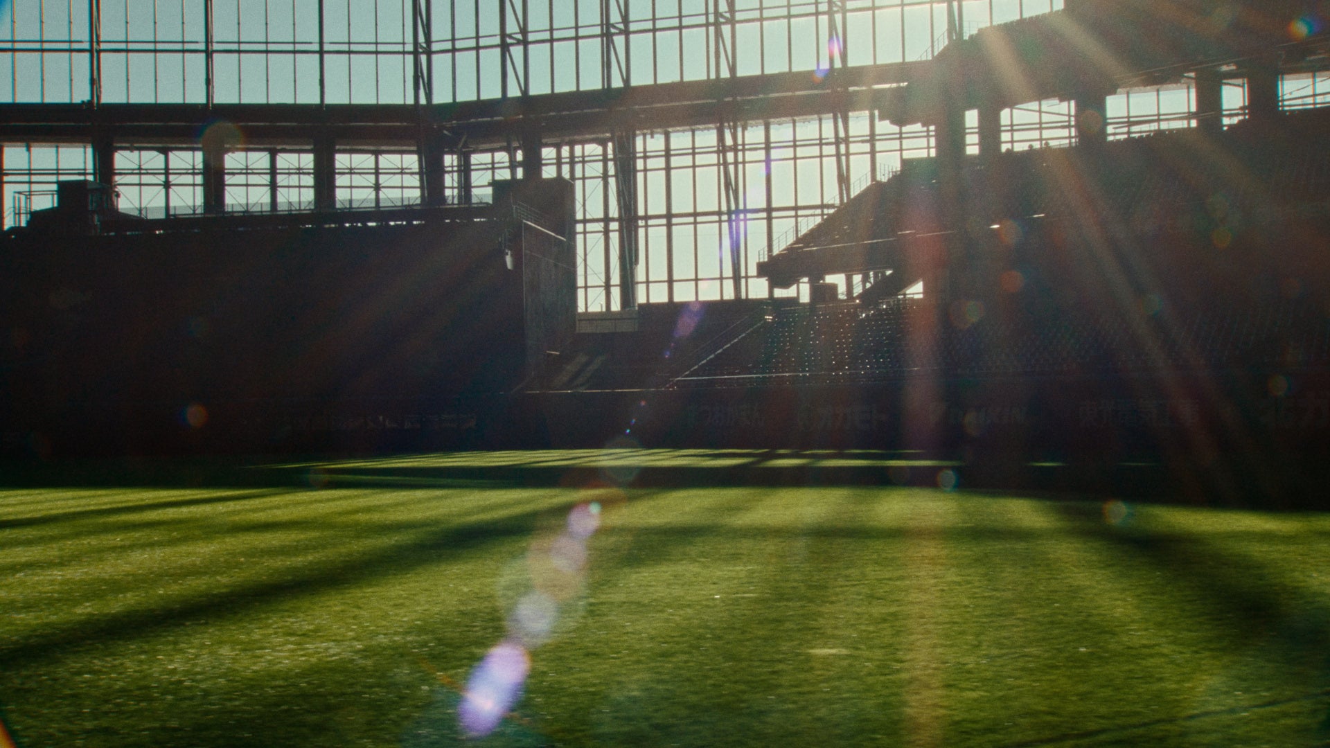 カートを走らせてマウンドの真ん中に立つ栗山さんを撮影した360度の映像にもご注目ください。