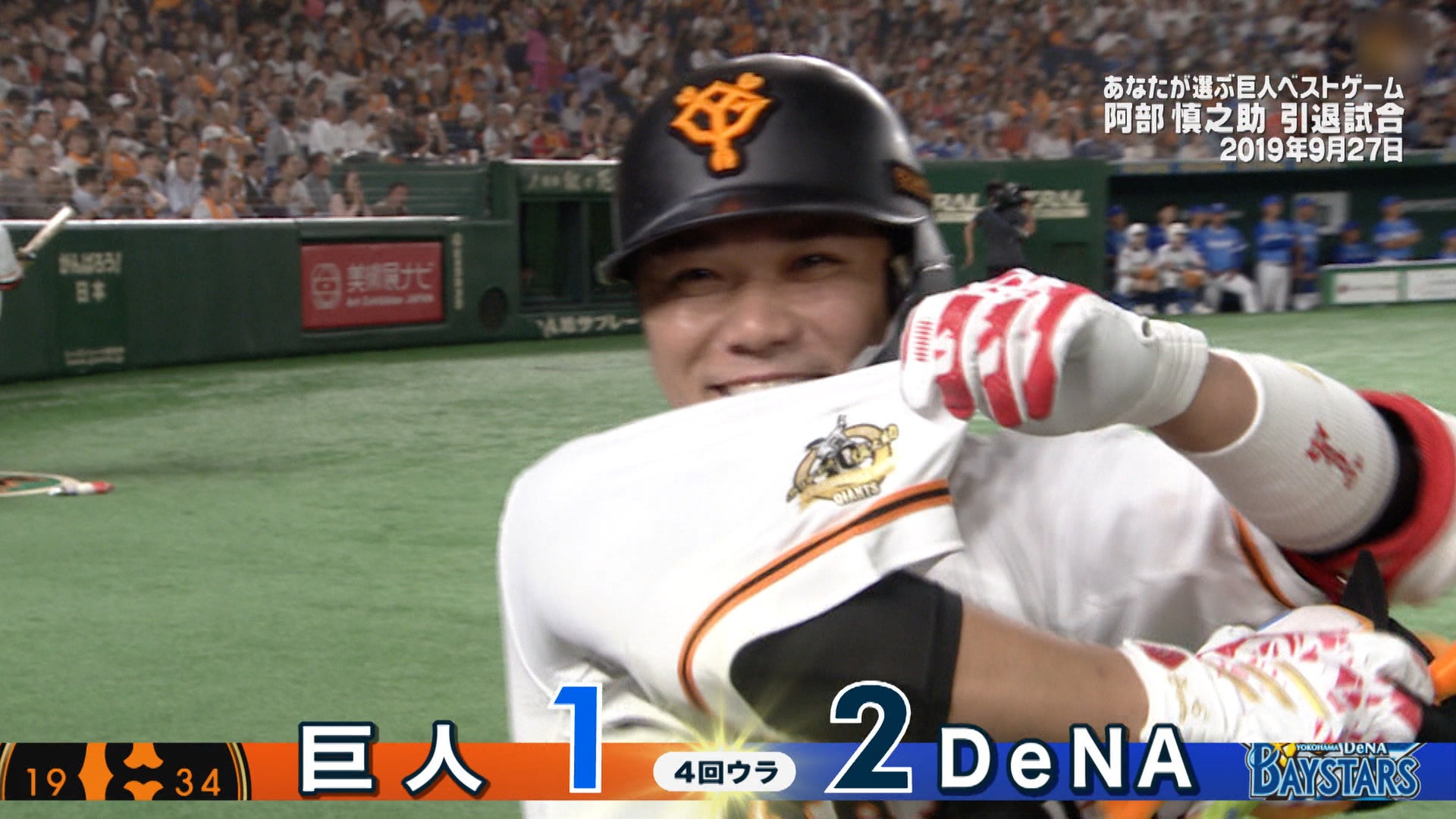 第25弾は、2019年9月27日DeNA戦、通算406号を放ち自ら花を添えた阿部慎之助捕手の引退試合を放送します。
