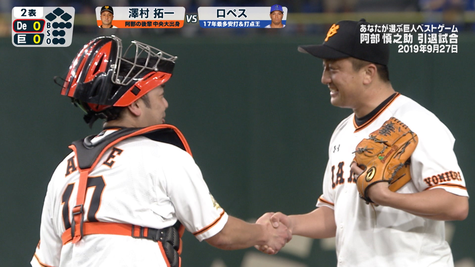 「あなたが選ぶ巨人ベストゲーム 第25弾」「ありがとう慎之助」2019年9月27日DeNA戦をCS放送日テレジータスにて8月5日(月) 午後9時より放送!!